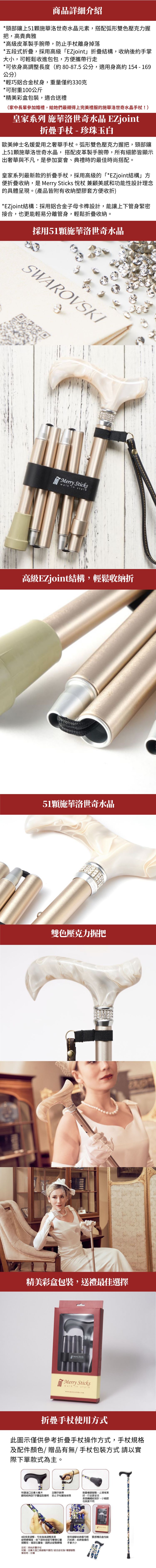 6. Merry Sticks 悅杖 皇家系列施華洛世奇水鑽 EZjoint折疊手杖-珍珠玉白 (單支)_輔具【杏一】