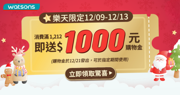 【1209-1213】屈臣氏消費滿$1,212送$1,000優惠券