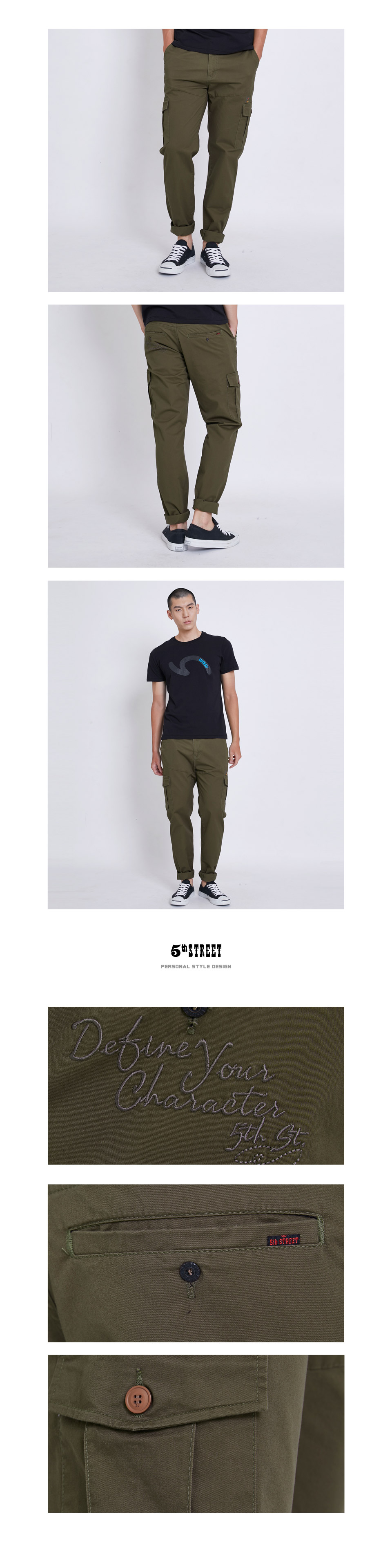 男裝 工作褲 潮系列工裝長褲 墨綠 (970243) 【5th STREET】【APP下單天天10%回饋】 ★神褲節 治裝激推 最高折426