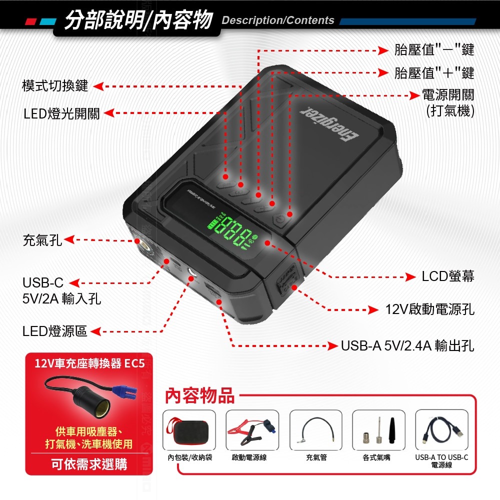 Energizer 勁量四合一多功能電動打氣/救車電源JE10001JP【APP下單6% 】