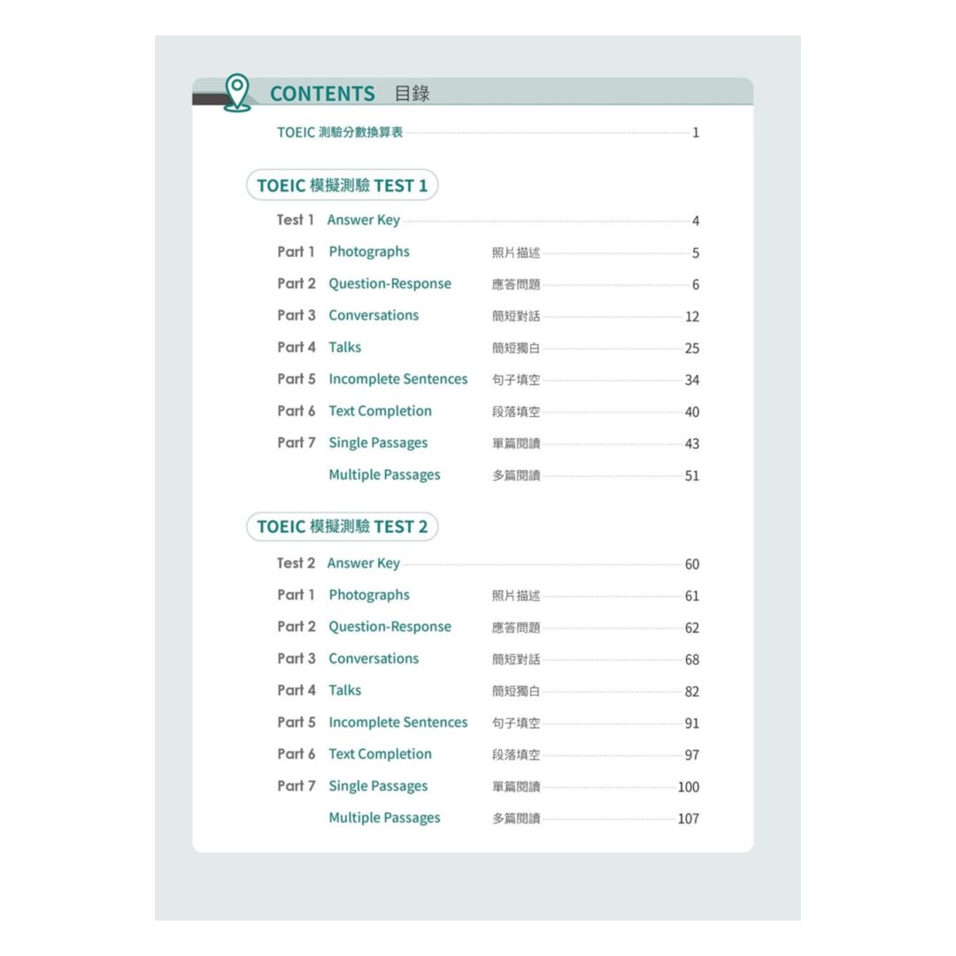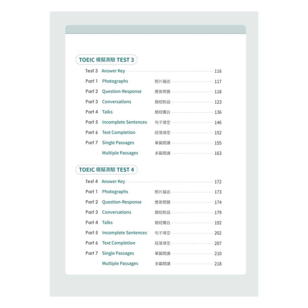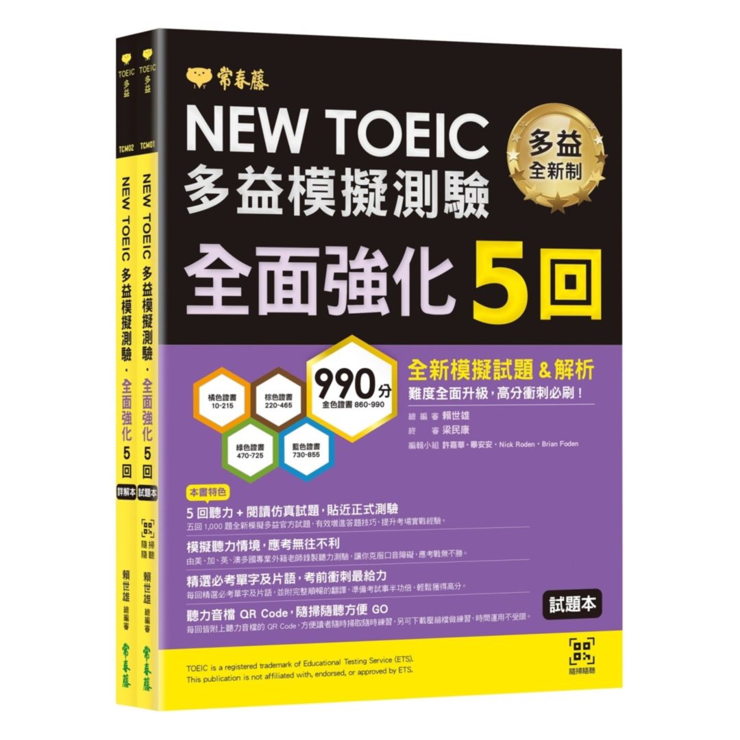 商品特色 : 5回聽力+閱讀仿真試題,貼近正式測驗