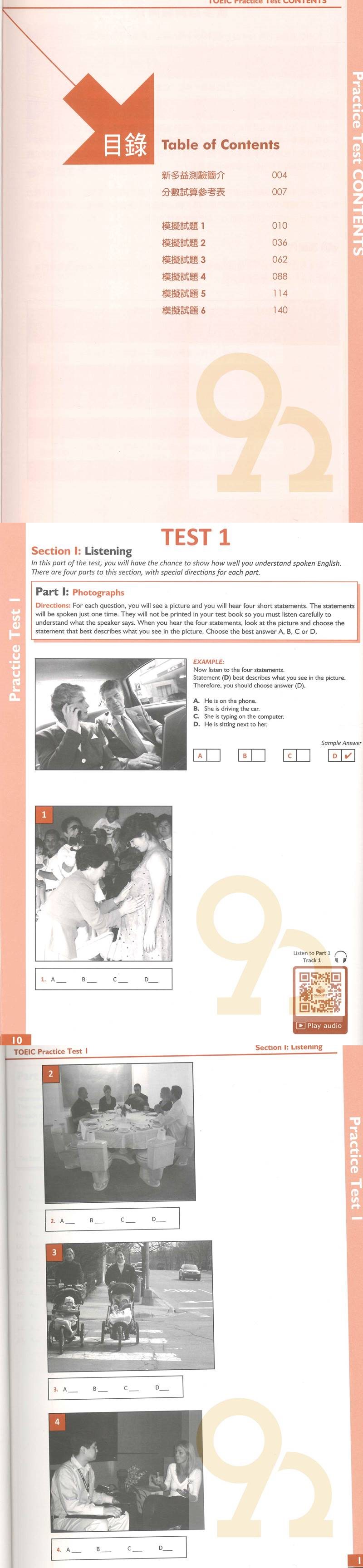 新制多益六回全真模擬試題,全新聽力閱讀題目,熟悉七大題型,輕鬆累積臨場應考實力。