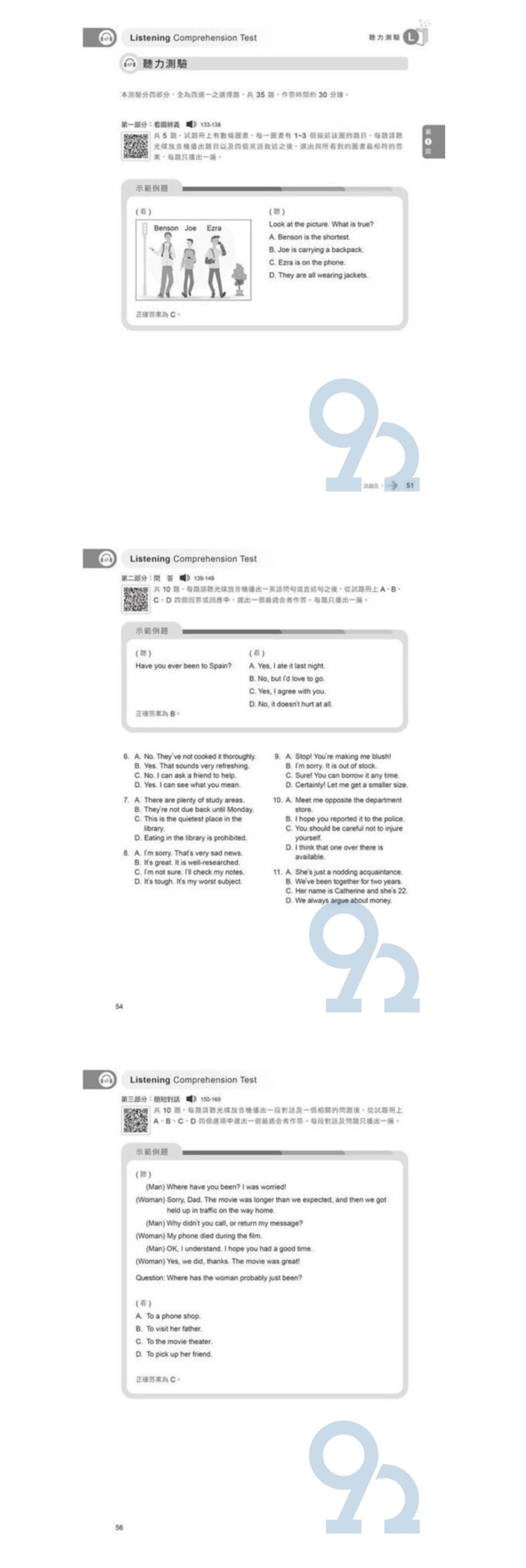 模擬測驗:簡短對話新增圖表題,測驗整合資訊的能力。並且新增第四部分