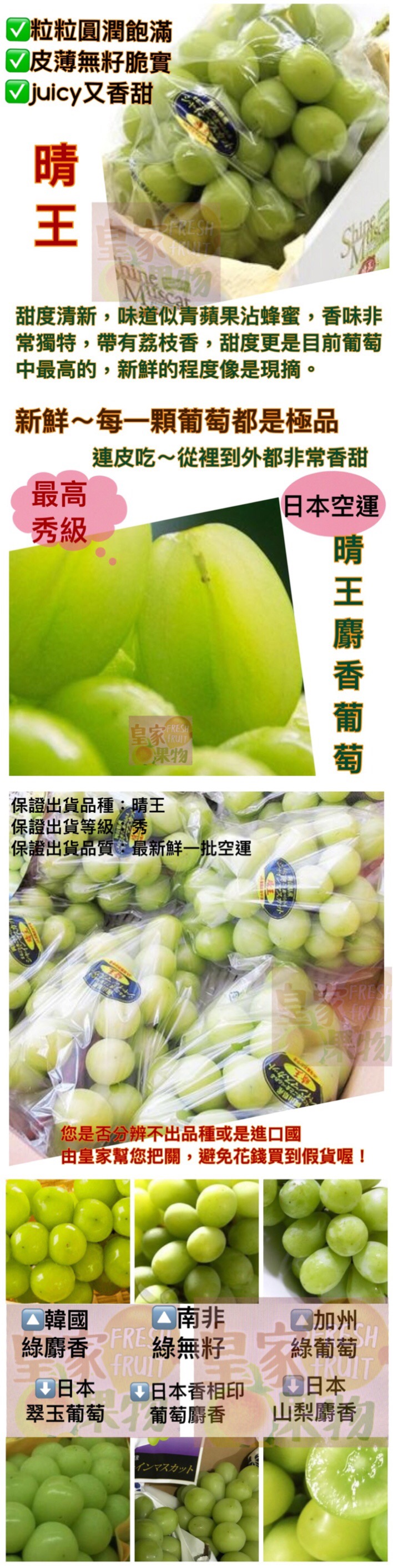 日本岡山頂級晴王麝香葡萄6~8房原裝箱/分裝禮盒【皇家果物】低溫免運 1日本岡山頂級晴王麝香葡萄6~8房原裝箱/分裝禮盒【皇家果物】低溫免運 2