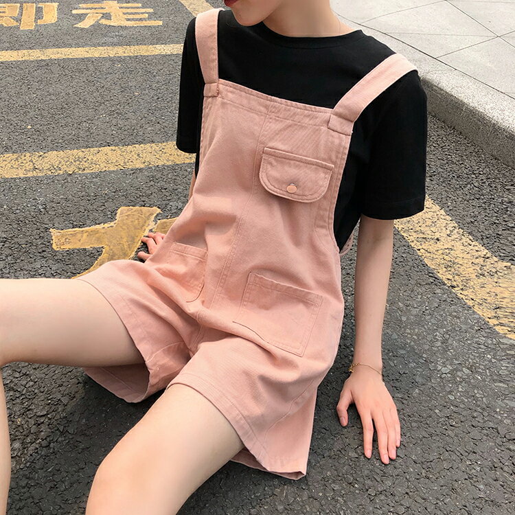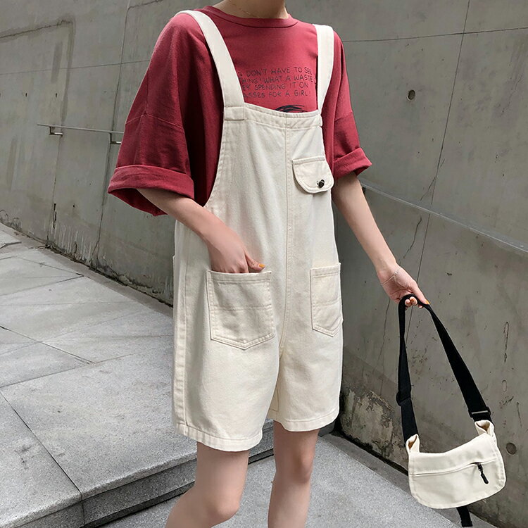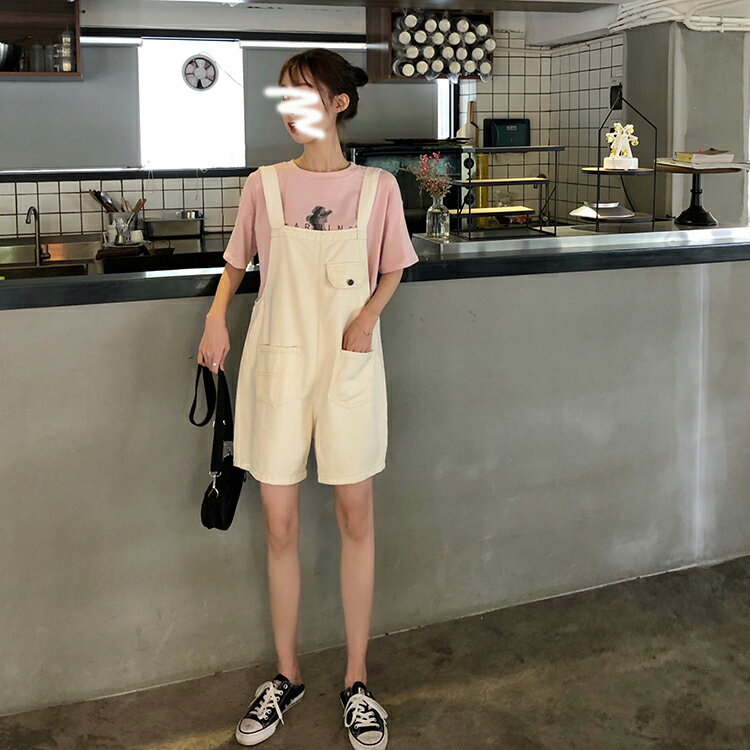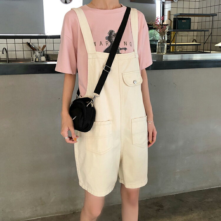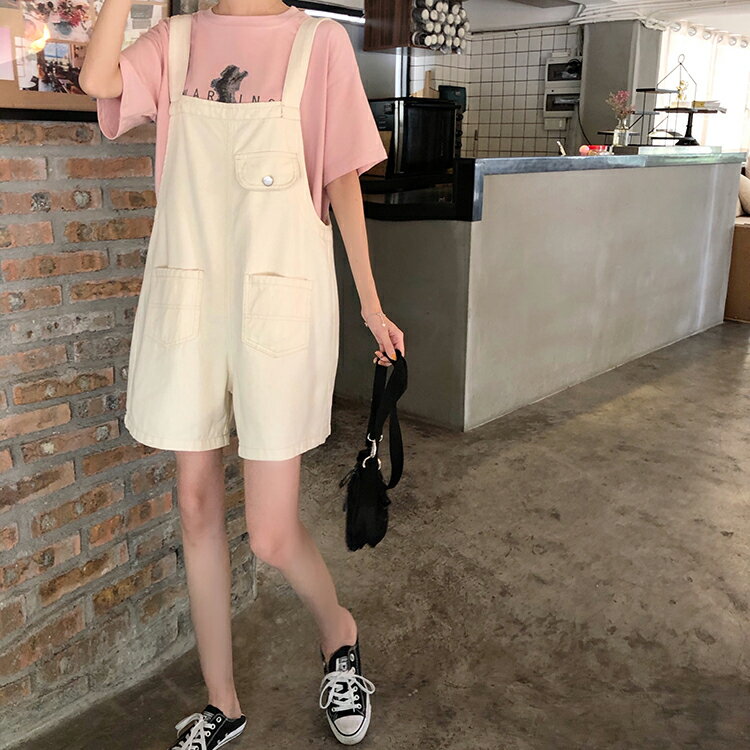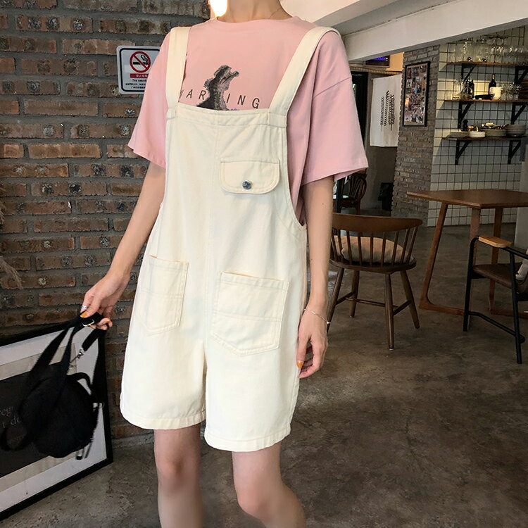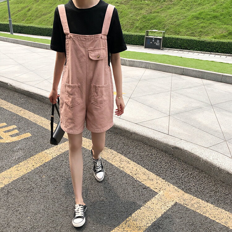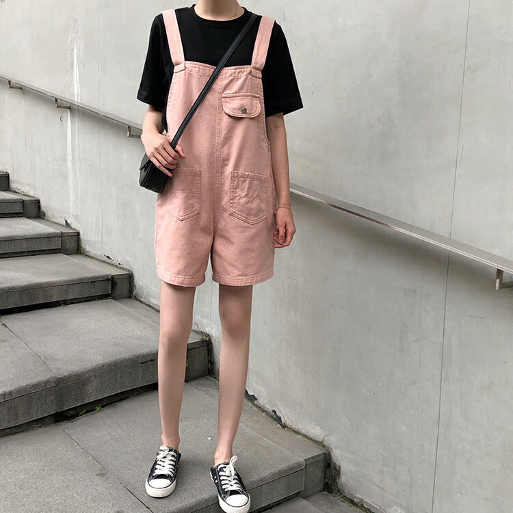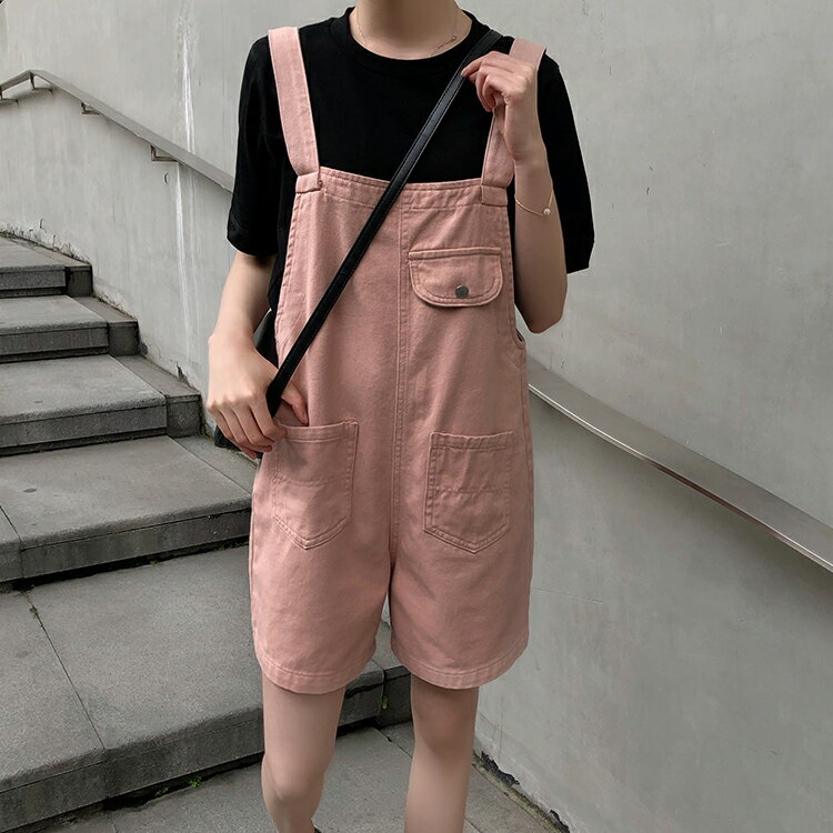 牛仔吊帶褲女夏季韓版寬鬆小個子休閒短褲減齡短款連身褲【聚物優品】