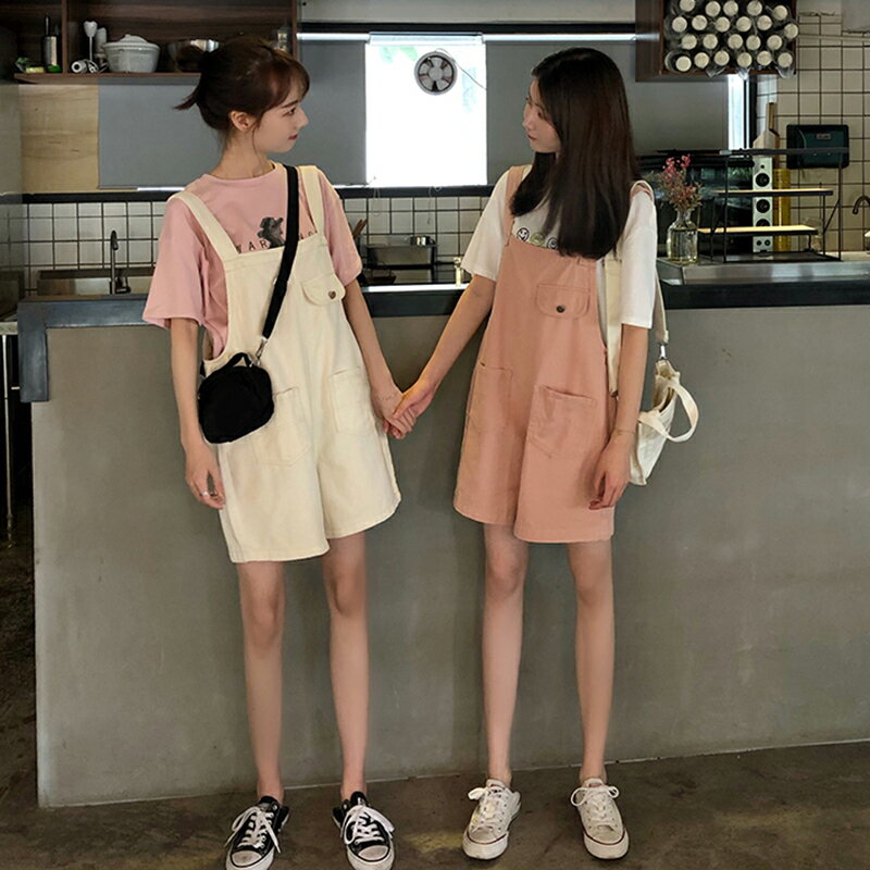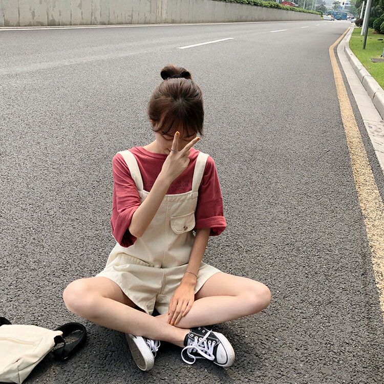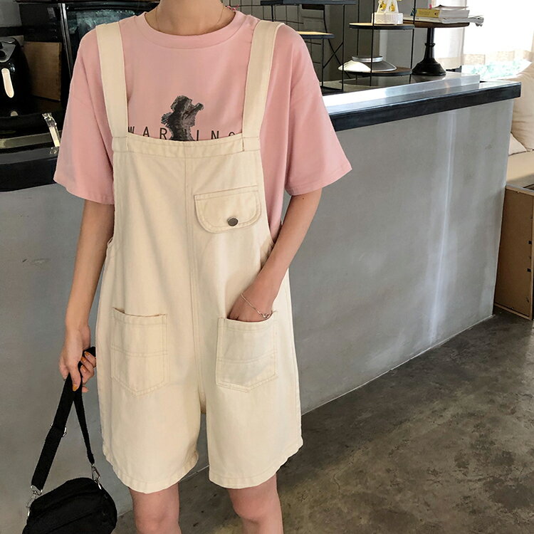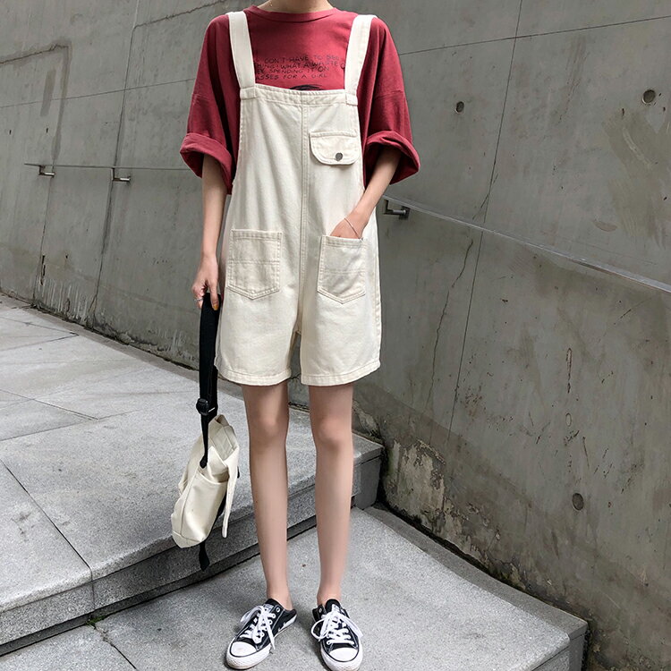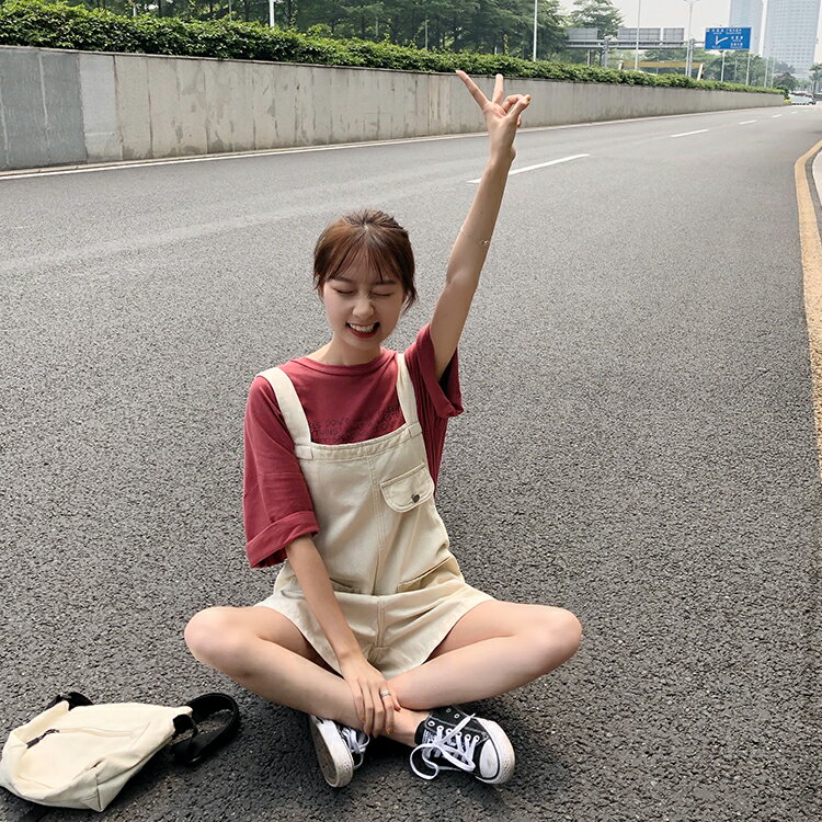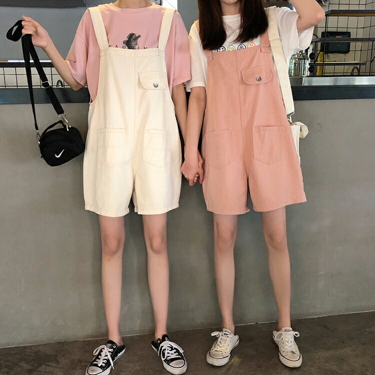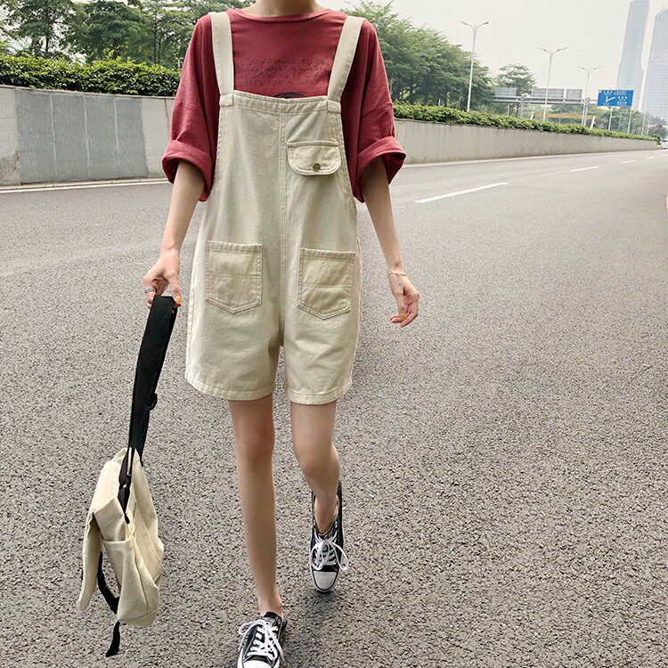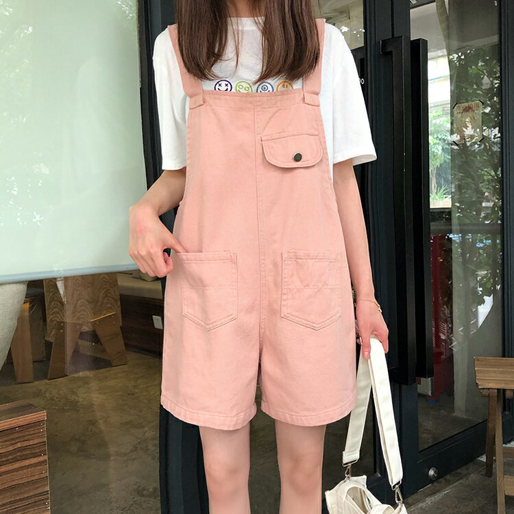 牛仔吊帶褲女夏季韓版寬鬆小個子休閒短褲減齡短款連身褲【聚物優品】