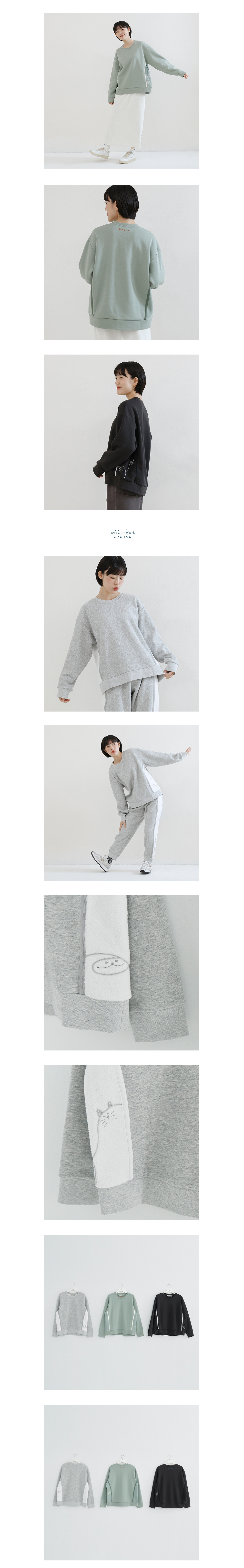 a la sha 繡花抹茶拼接大學T
