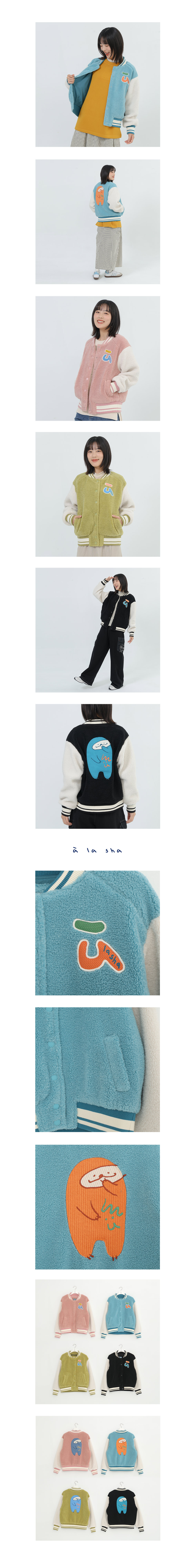 a la sha 毛絨絨抹茶拼色棒球外套