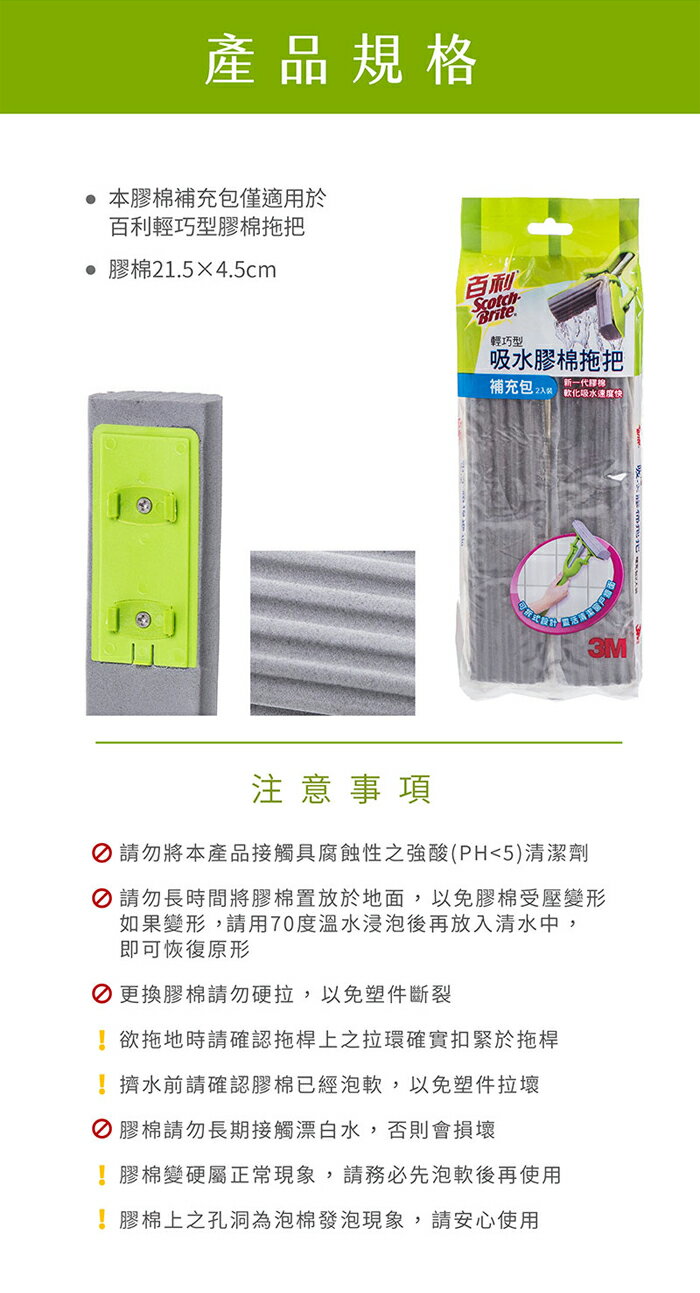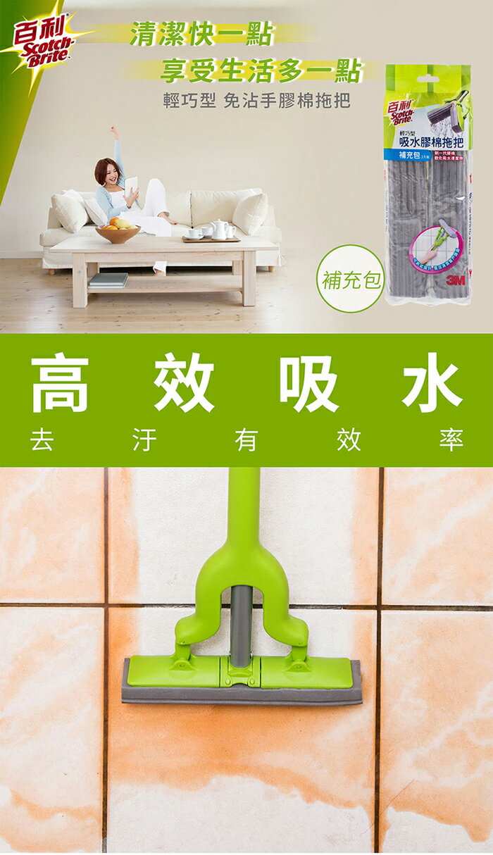 3M百利 輕巧型吸水膠棉拖把補充包(2入裝/包)【愛買】 5