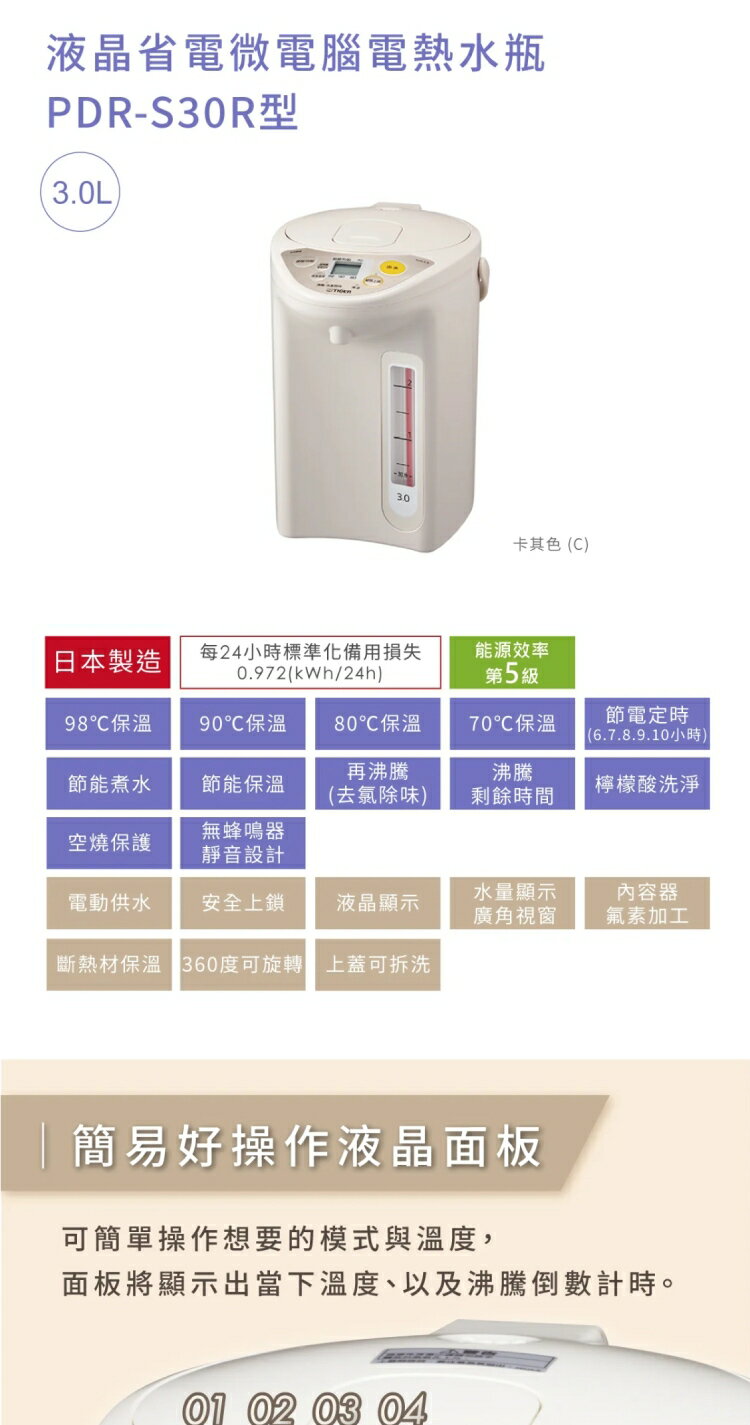 TIGER虎牌 3L微電腦液晶熱水瓶PDR-S30R-CU【愛買】 4