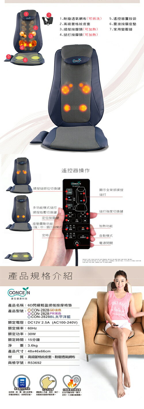 Concern康生 6D閃耀輕盈揉槌按摩椅墊-藍/紫/金(CON-2828)仿真人揉捏 溫熱【愛買】 5