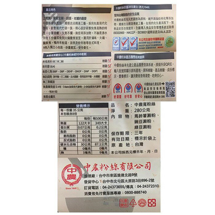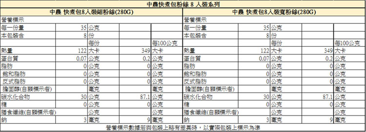 中農快煮包粉絲8入裝系列(細粉絲/寬粉絲)【愛買】 3