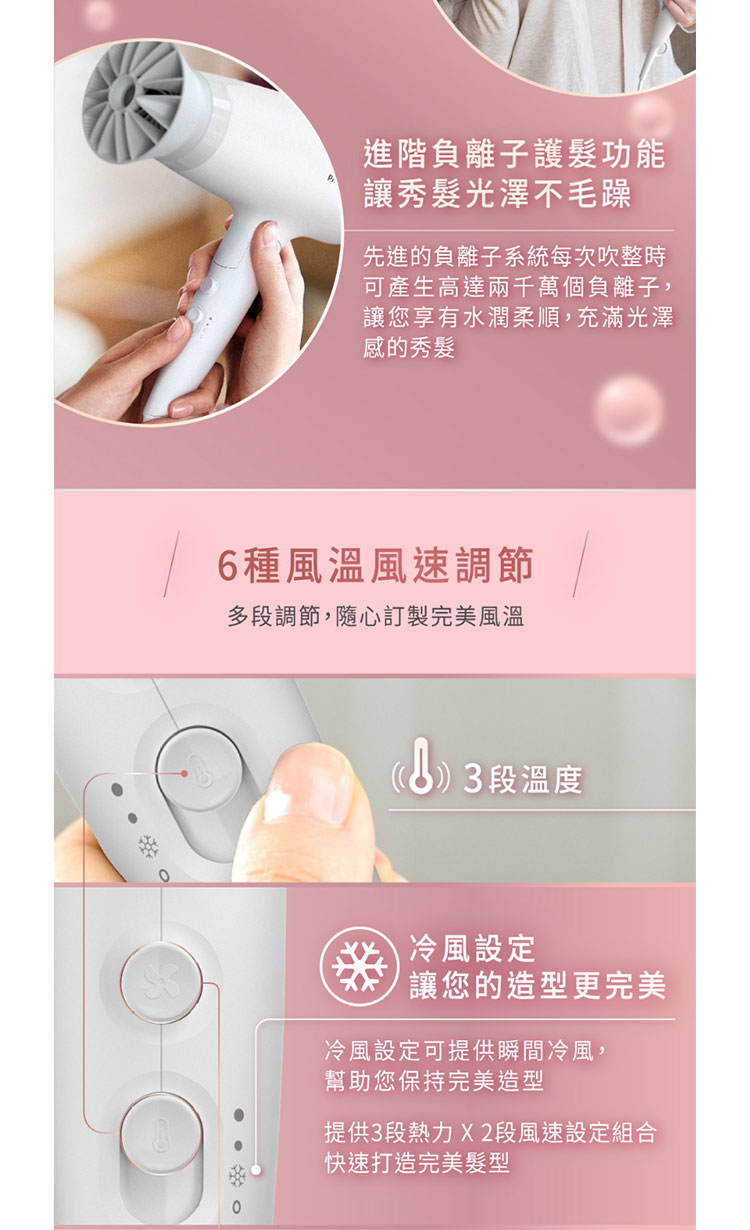 PHILIPS飛利浦 溫控負離子吹風機 BHD378/01-白【愛買】 3