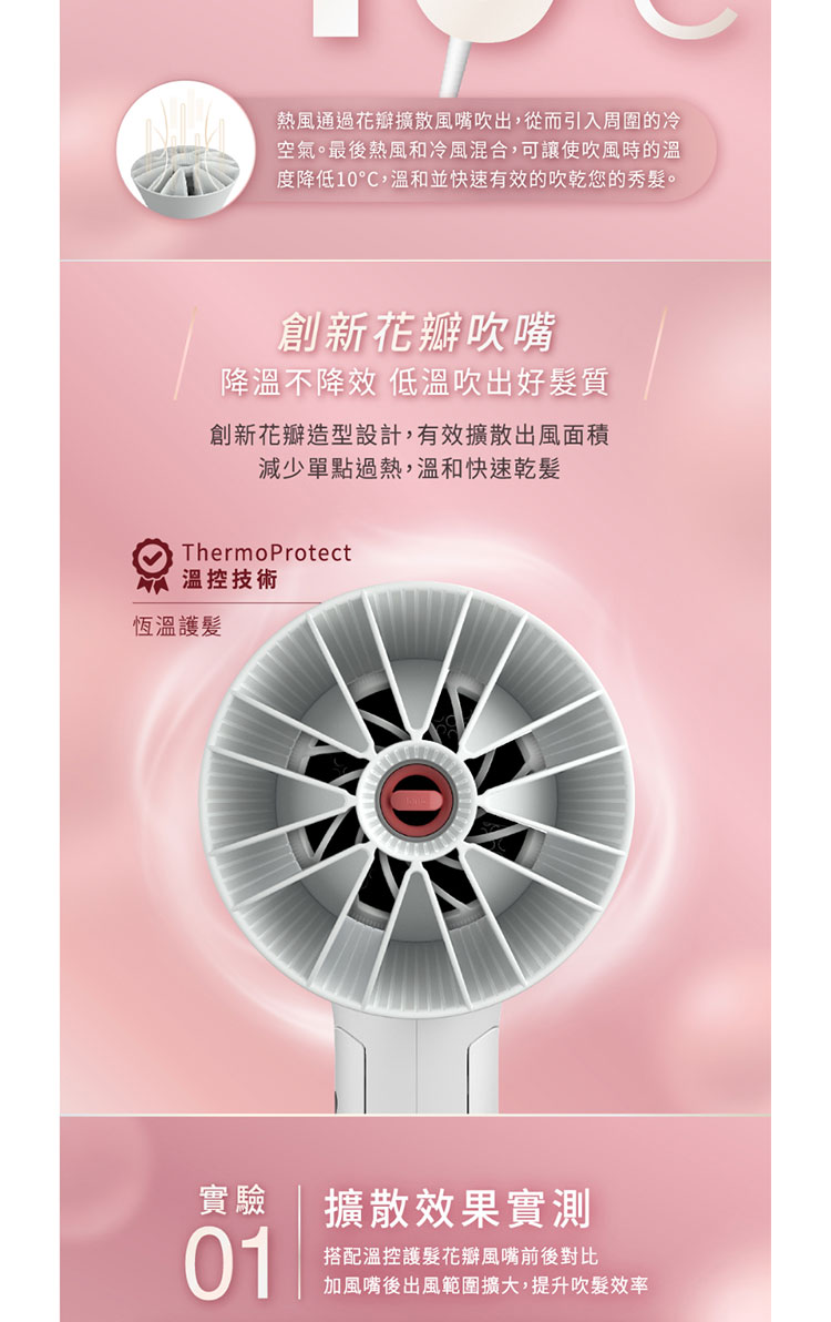◆ 乾髮溫和快速 - 創新花瓣造型吹嘴設計