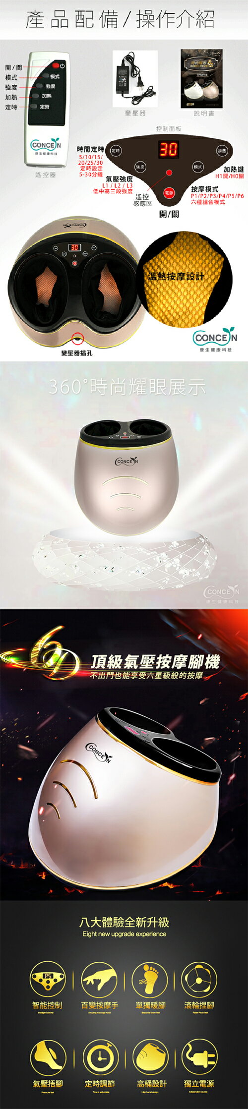 Concern康生 6D氣壓式美型按摩腳機CM-716(玫瑰金) 氣壓滾輪按捏 熱敷 可拆洗【愛買】 1