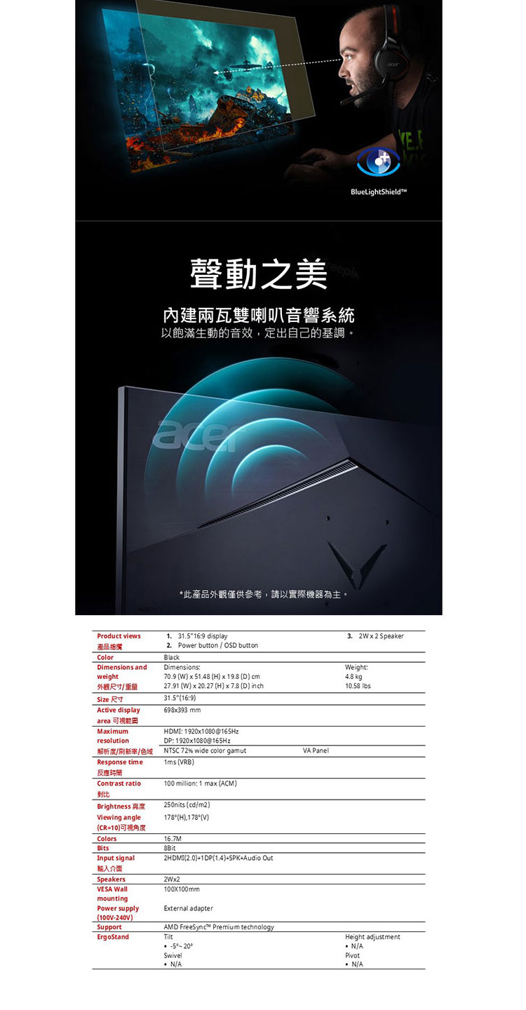 ACER 32型曲面電競螢幕ED320QR S3 【愛買】 6