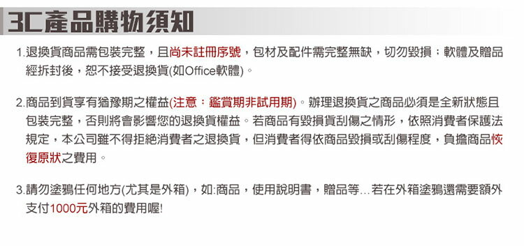 ◆ 經消費者拆封之3C商品,不適用7天鑑賞期