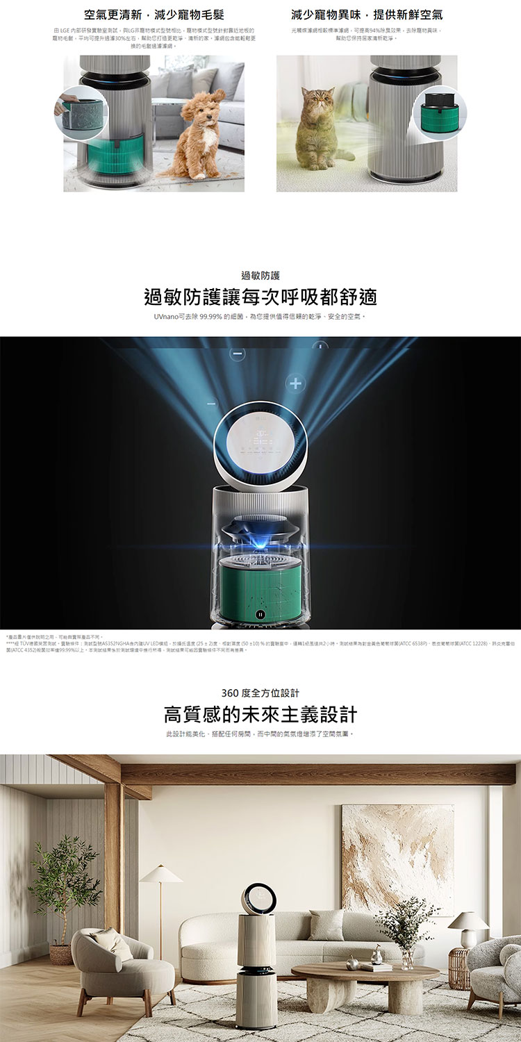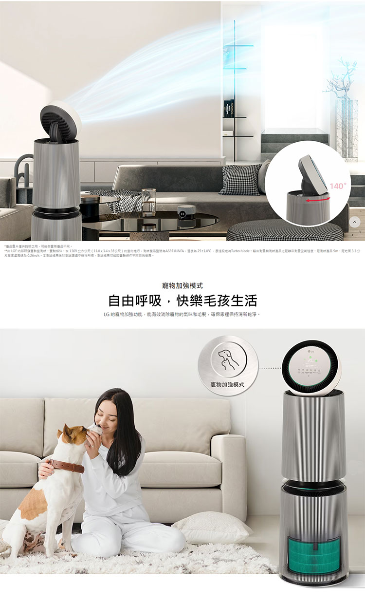 6. LG樂金 PuriCare寵物功能增加版二代雙層360度空氣清淨機 AS101DBY0~A【愛買】