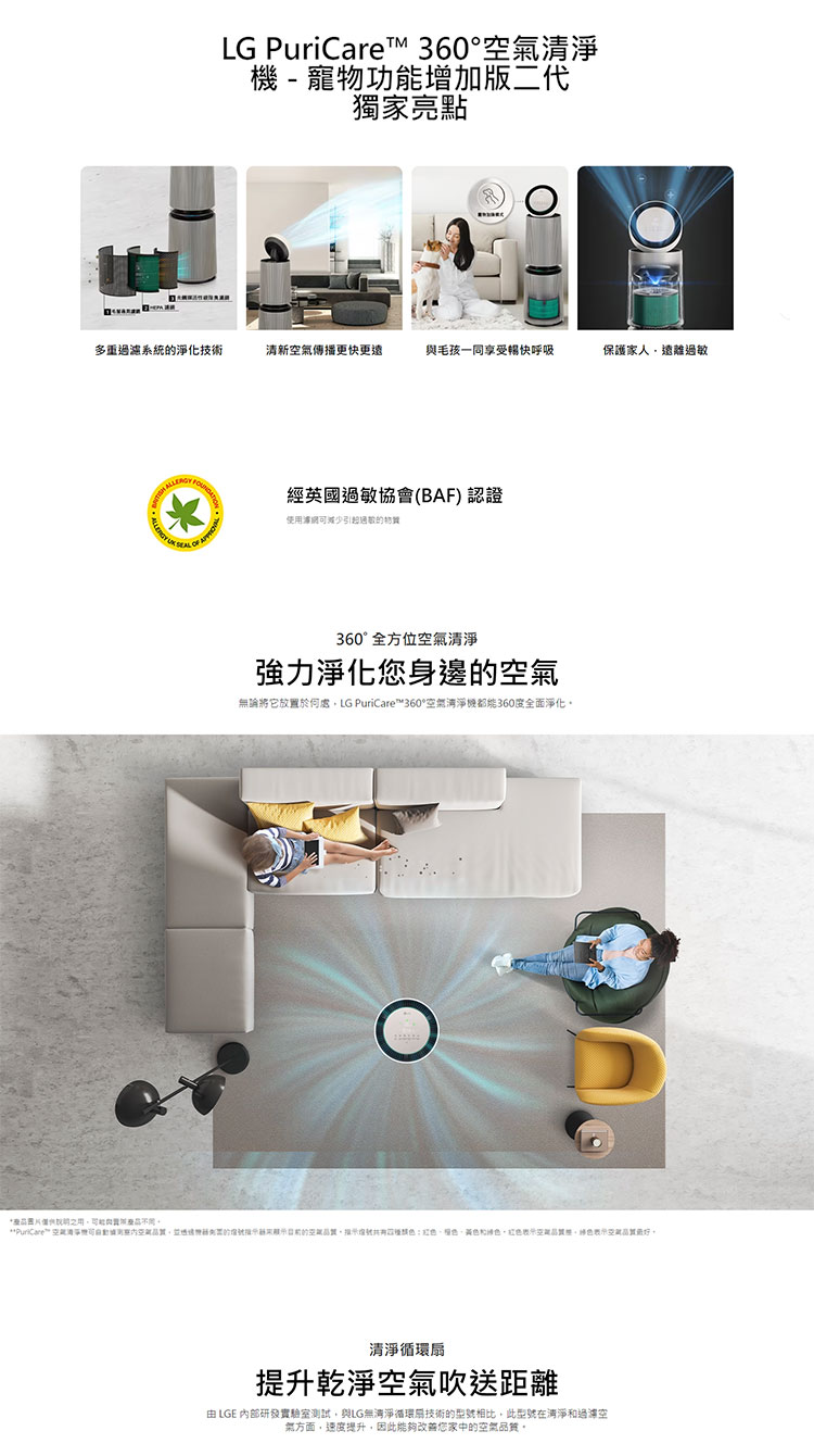 LG樂金 PuriCare寵物功能增加版二代雙層360度空氣清淨機 AS101DBY0~A【愛買】 4