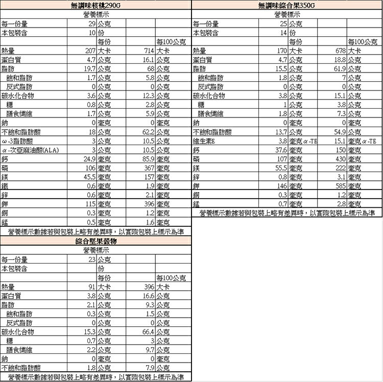 2.無調味綜合果350G:杏仁果、核桃、腰果、榛果、夏威夷果