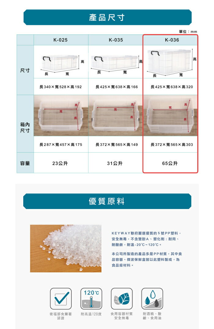 KEYWAY聯府 強固型掀蓋整理箱K-036(65L)【2件超值組】台灣製 置物 收納【愛買】 5