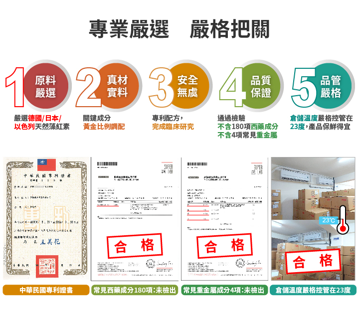 A:新愛眸錠選用的藻紅素來源為,以色列(日本濃縮)、或德國濃縮之陸上室內(初期)、室外(後期)獨立培養的天然雨生紅球藻(Haematococcus),淡水培養,不含碘,有甲狀腺疾病者可以安心食用。獨立培育很重要,因為可以確保最低雜質的混入,從源頭保證藻紅素的純淨。並使用日本或德國技術萃取的高規格藻紅素。