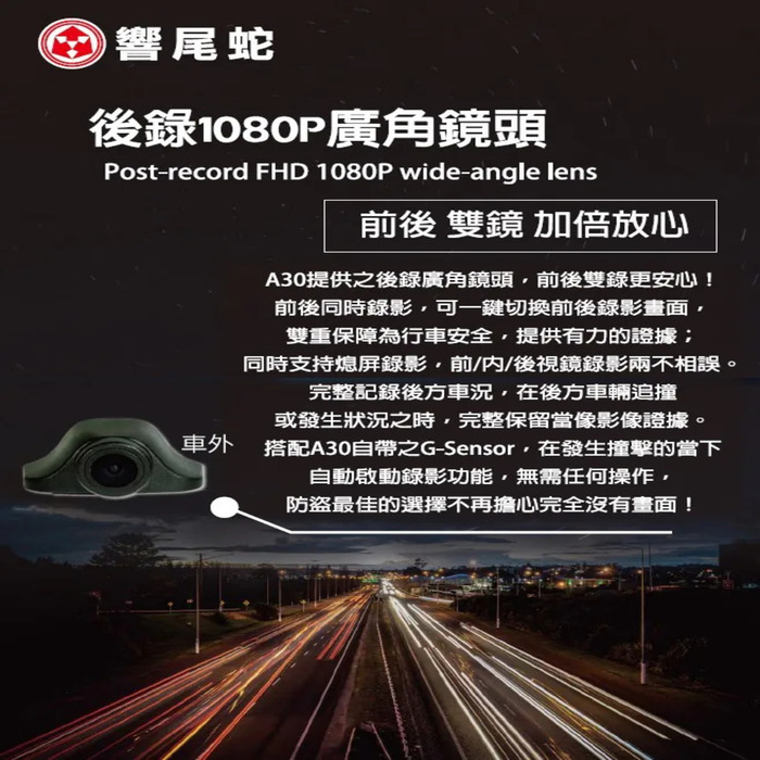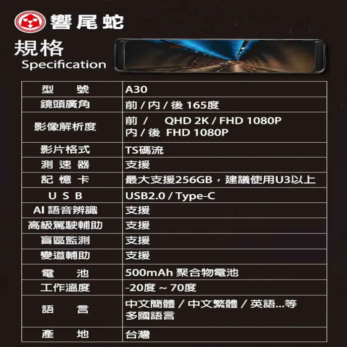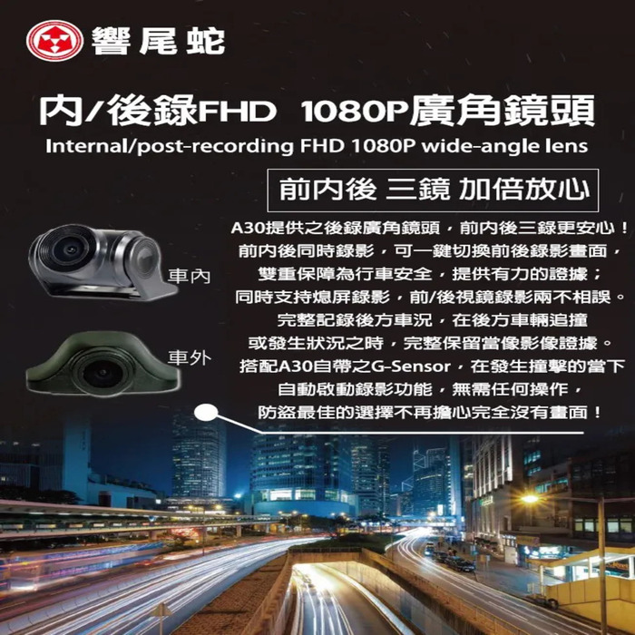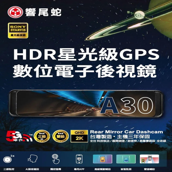 響尾蛇 A30|2K高畫質電子後視鏡|車內錄影|Sony感光|GPS|倒車顯影|行車紀錄器