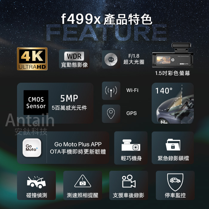 6. 雙錄版 HP惠普 F499x 雙錄+測速 4K超高畫質美型迷你機身|1.5吋螢幕|OTA|WIFI|行車記錄器