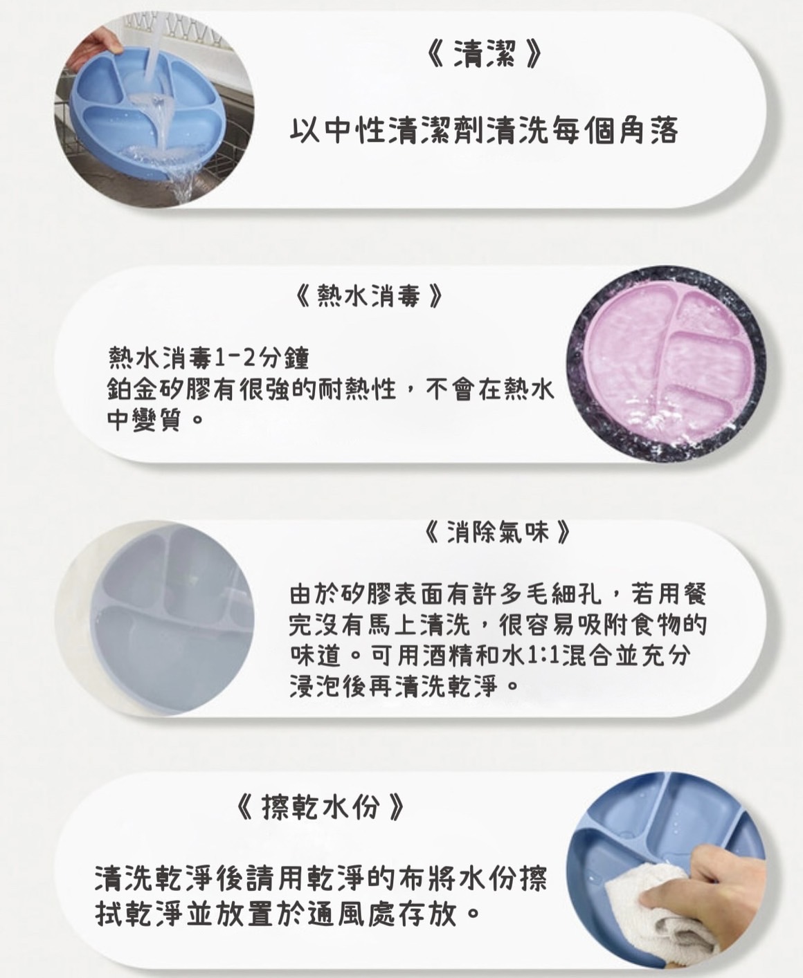 ⚠️因矽膠製品本身有毛細孔,較容易吸附食物的味道或是較深的食物色素