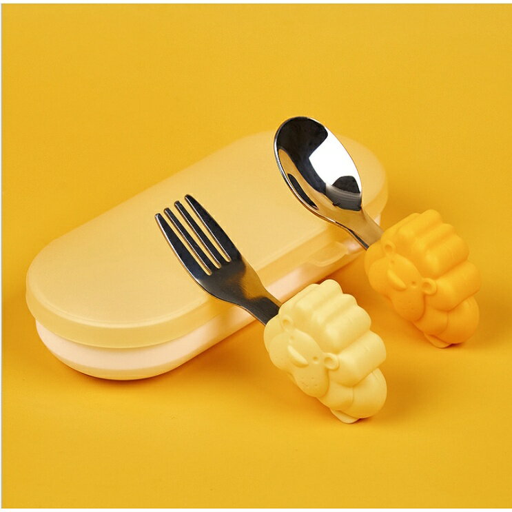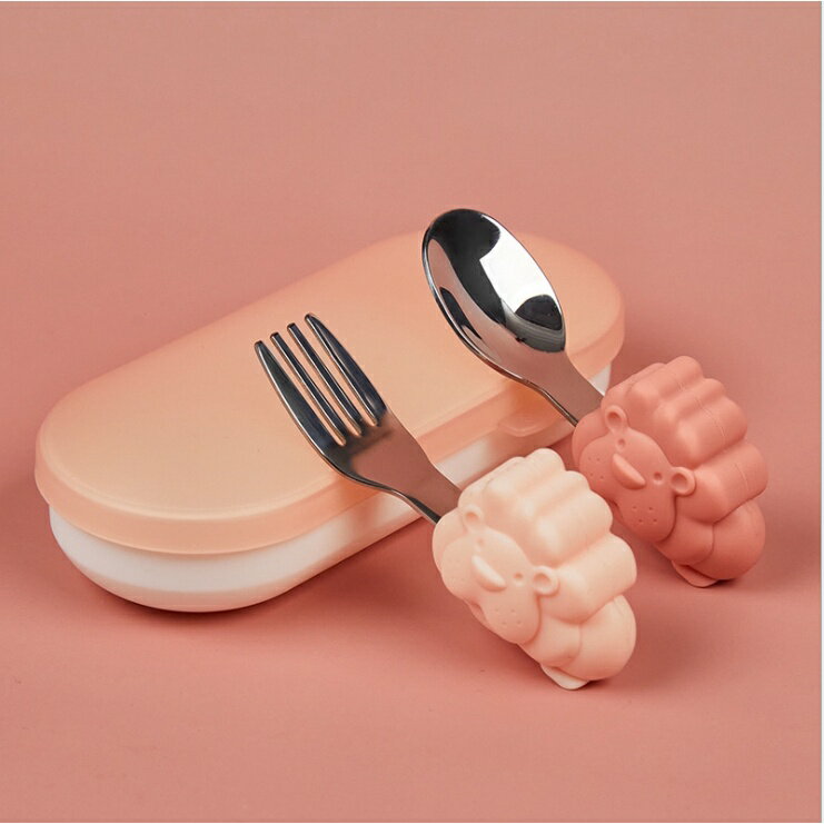 《台灣現貨》奶油獅316不鏽鋼學習湯叉組(送收納盒)