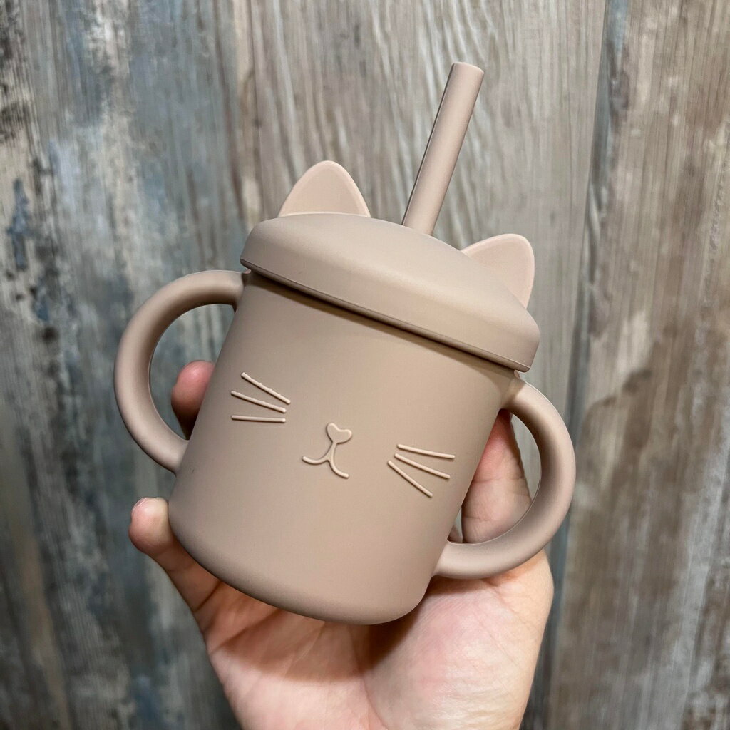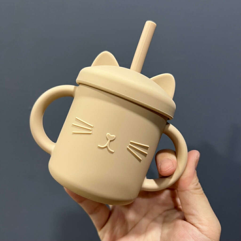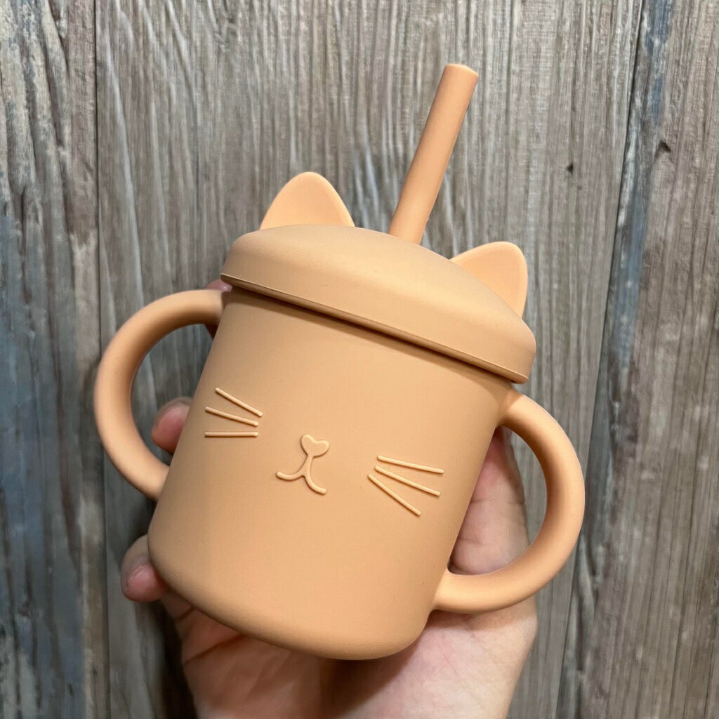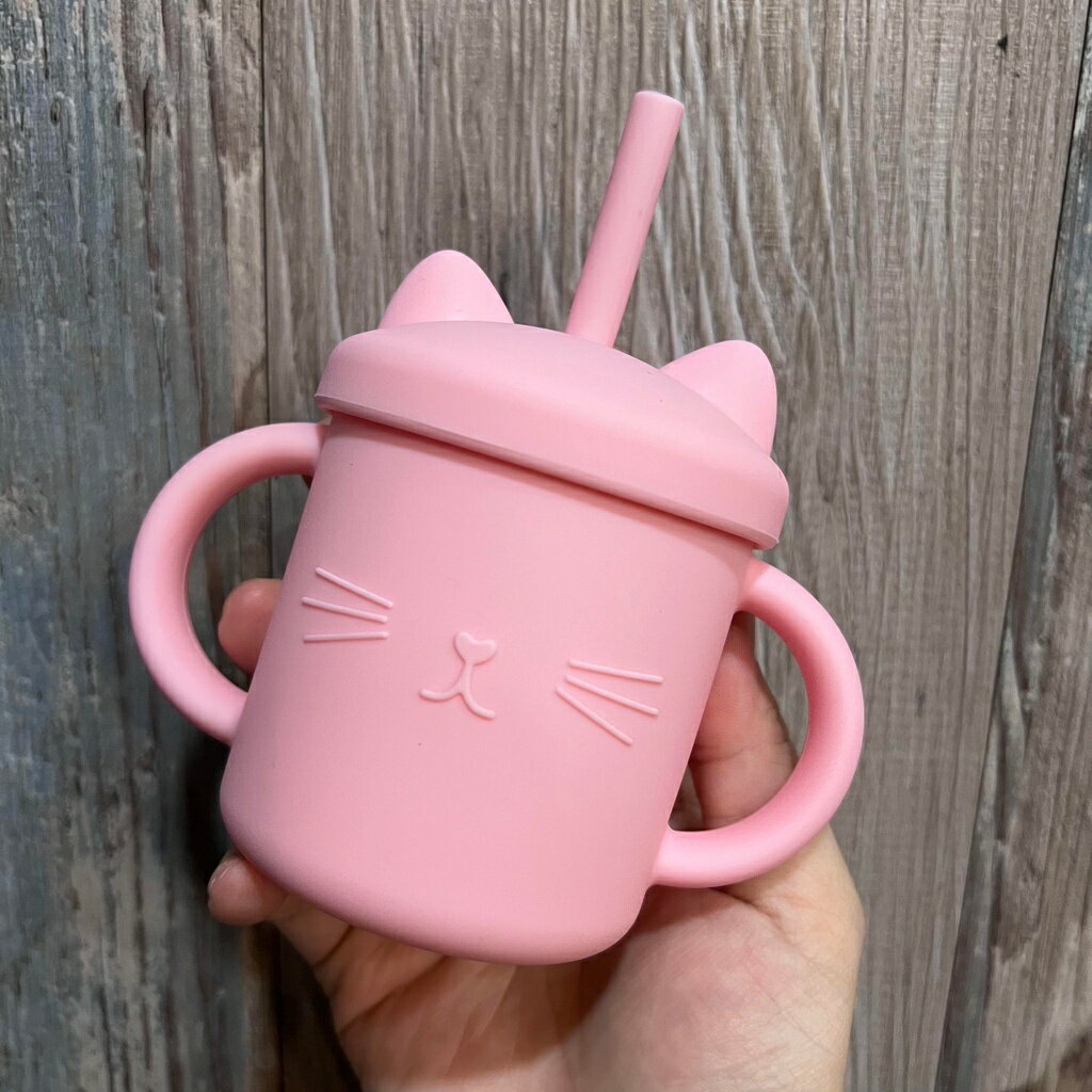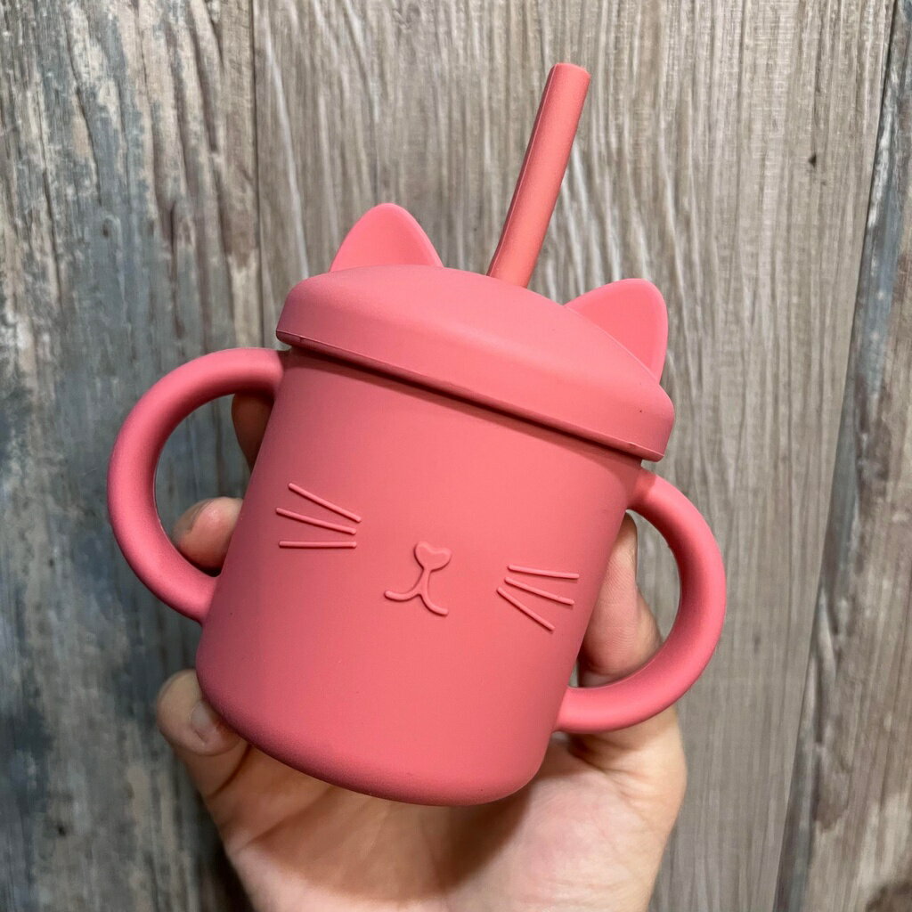 台灣FDA合法進口》小萌貓矽膠學習吸管杯(送吸管刷)