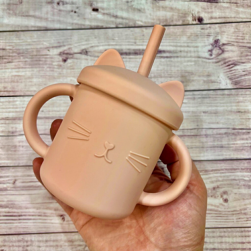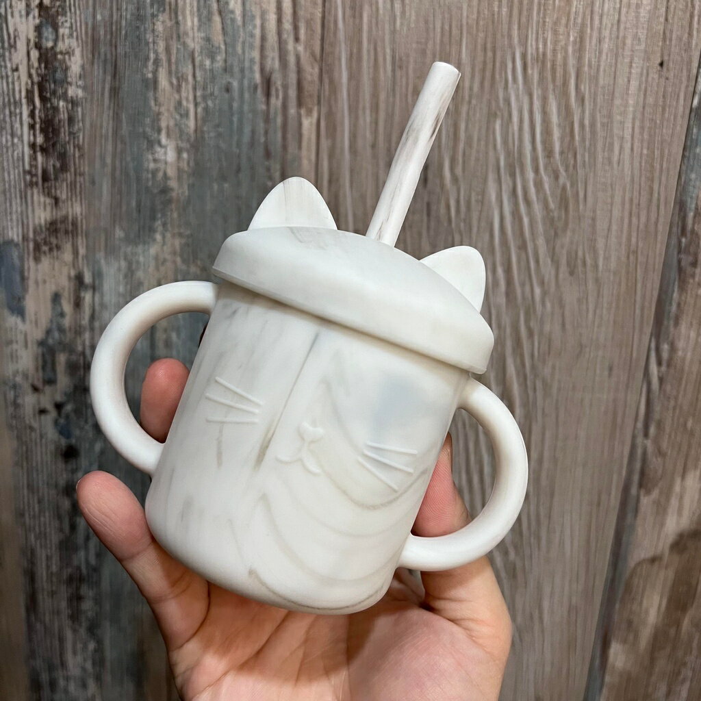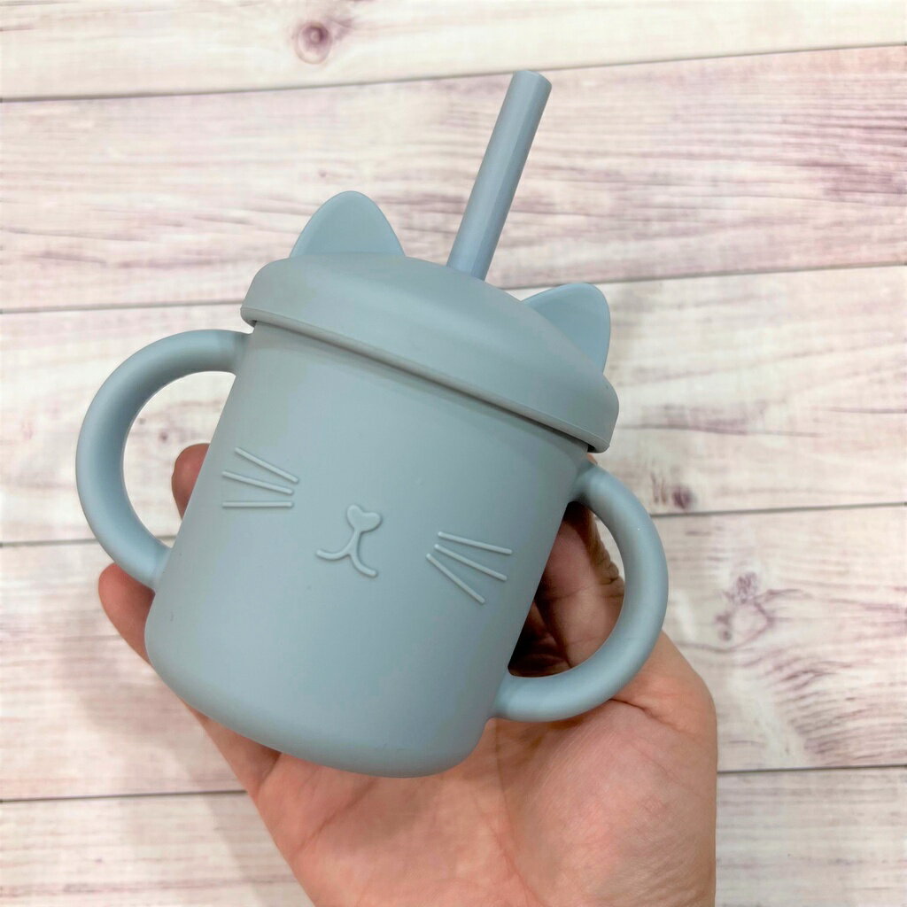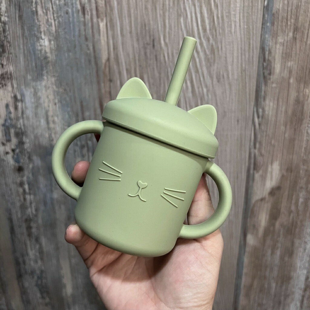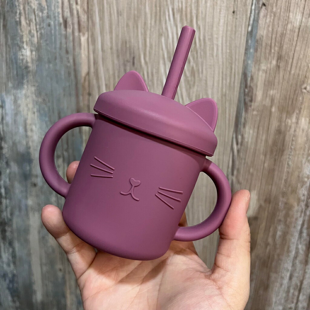 台灣FDA合法進口》小萌貓矽膠學習吸管杯(送吸管刷)
