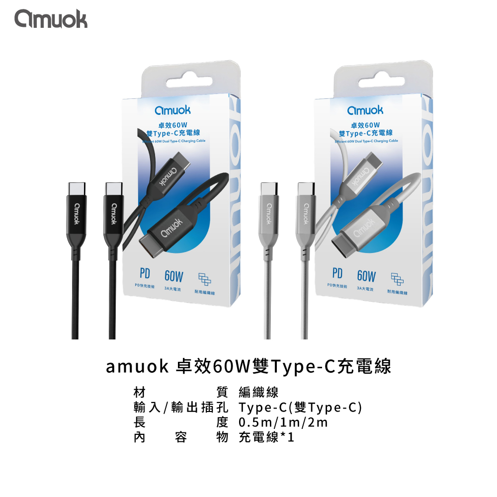 5. 【amuok】60W卓效 雙Type-C 充電線 蘋果PD快充