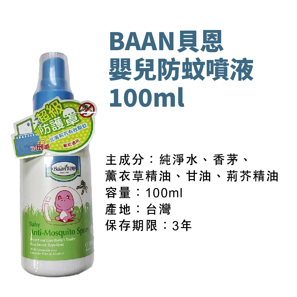 BAAN貝恩嬰兒防蚊噴液100ml 防蚊液 埃及斑蚊