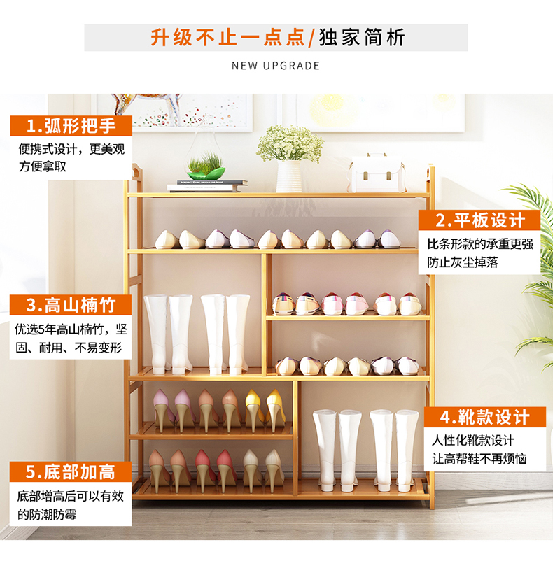 5. 鞋架多層簡易防塵實木鞋櫃子小家用室內好看經濟型放門口收納神器