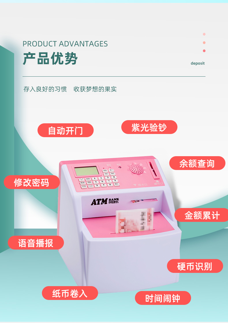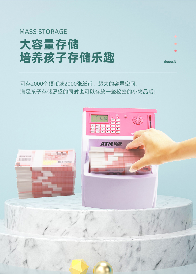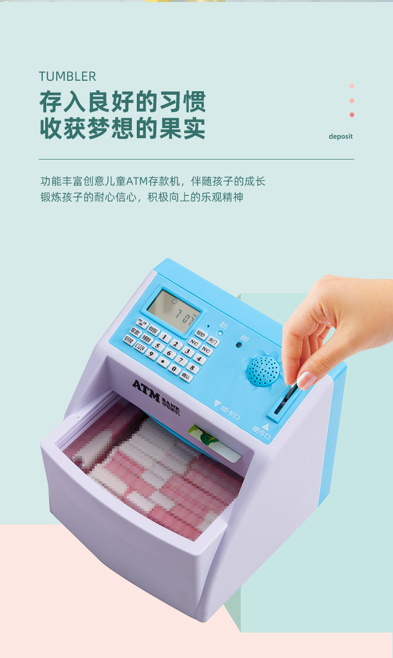 【九折】存錢筒 兒童atm存取款機大容量儲蓄罐網紅自動存錢罐女生防摔密碼箱男孩 2