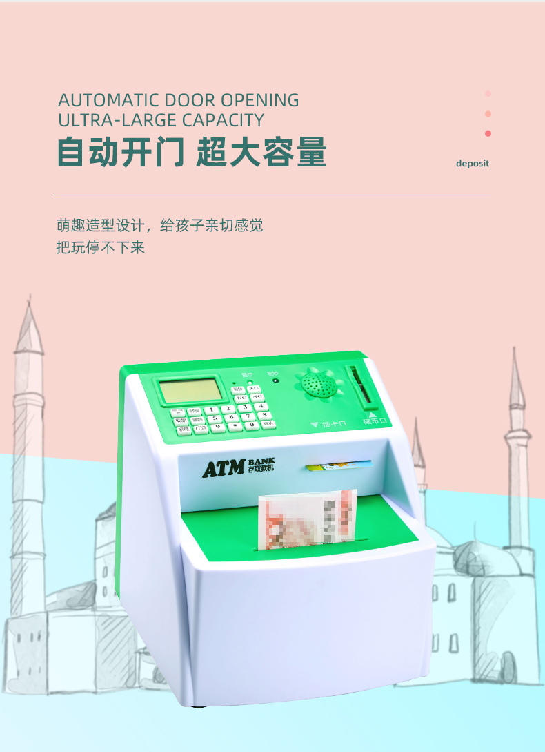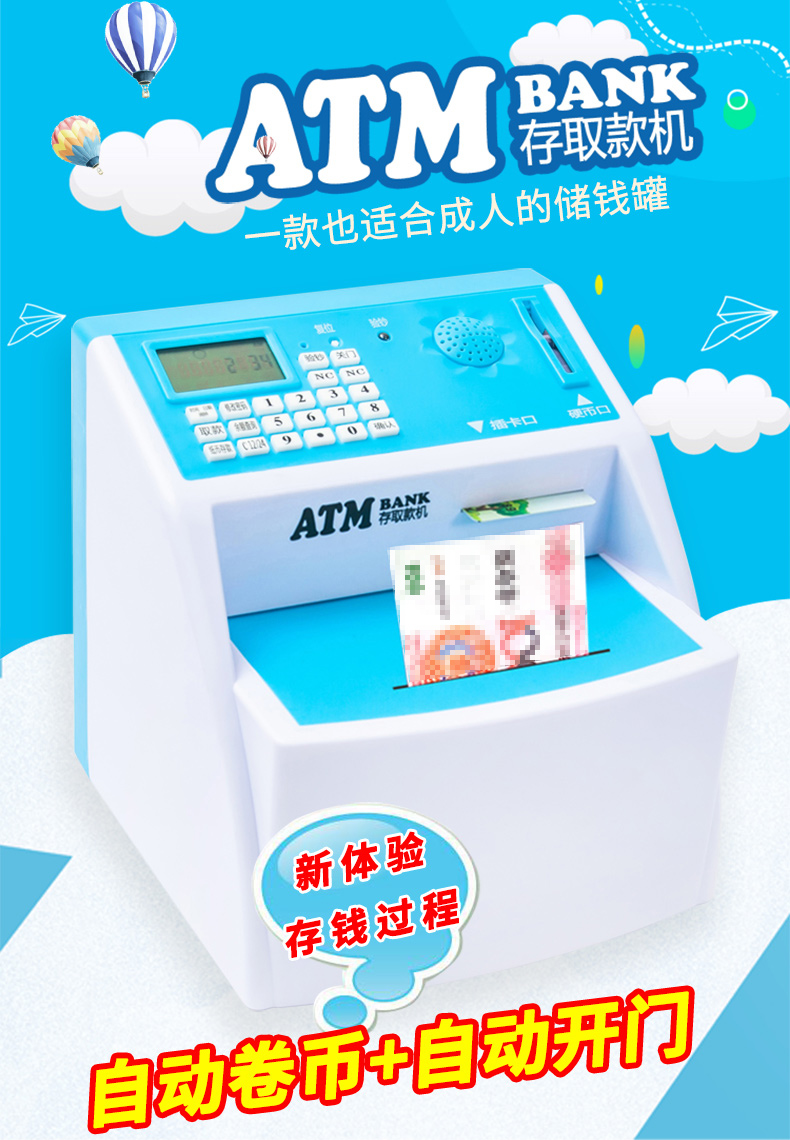 【九折】存錢筒 兒童atm存取款機大容量儲蓄罐網紅自動存錢罐女生防摔密碼箱男孩 1