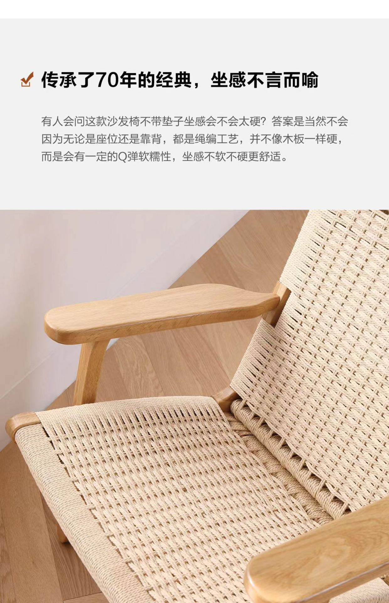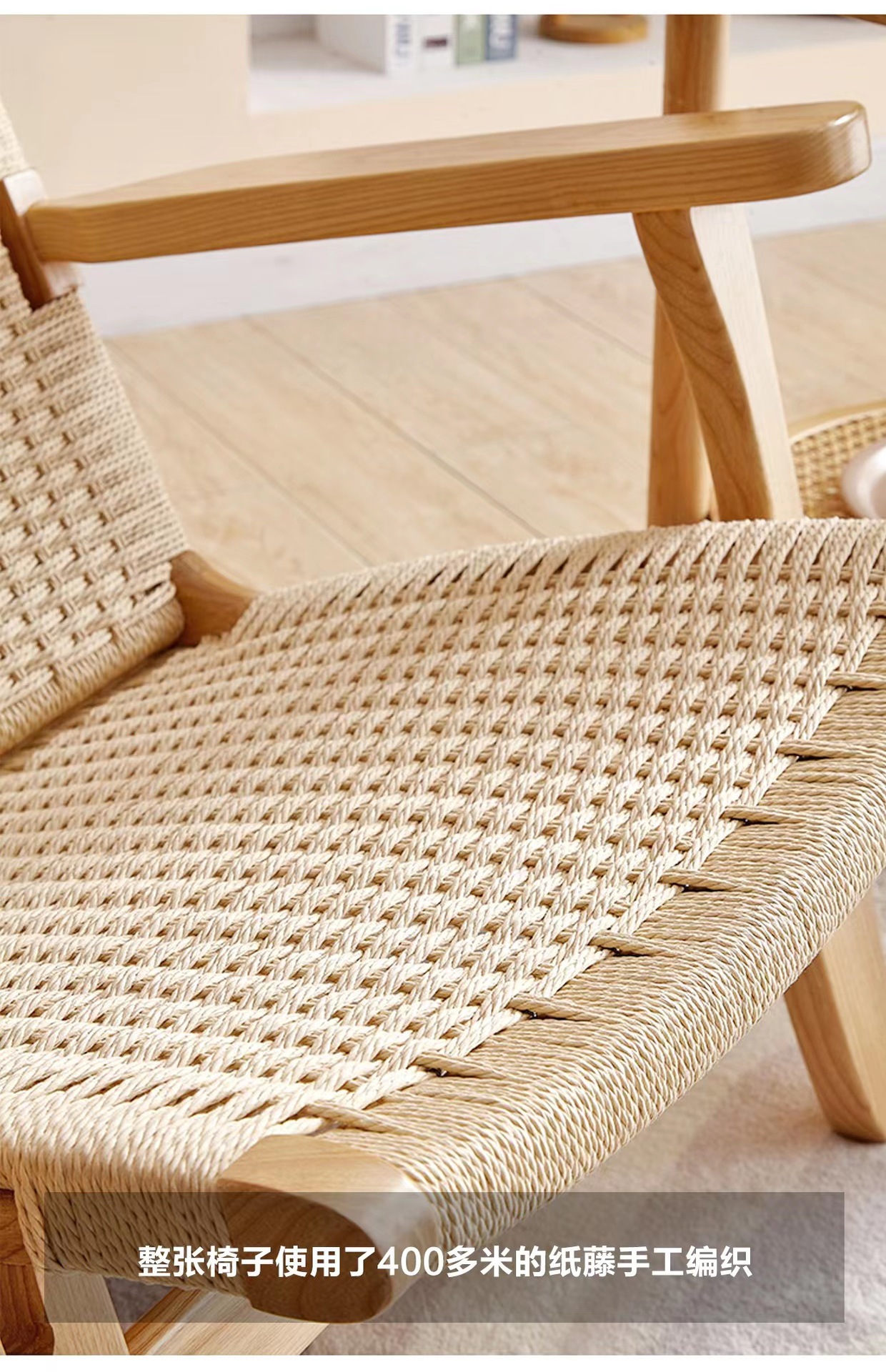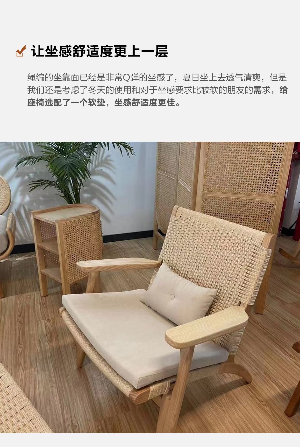 6. 北歐實木繩編懶人沙發椅客廳咖啡廳民宿休閒靠背椅子家用讀書椅子