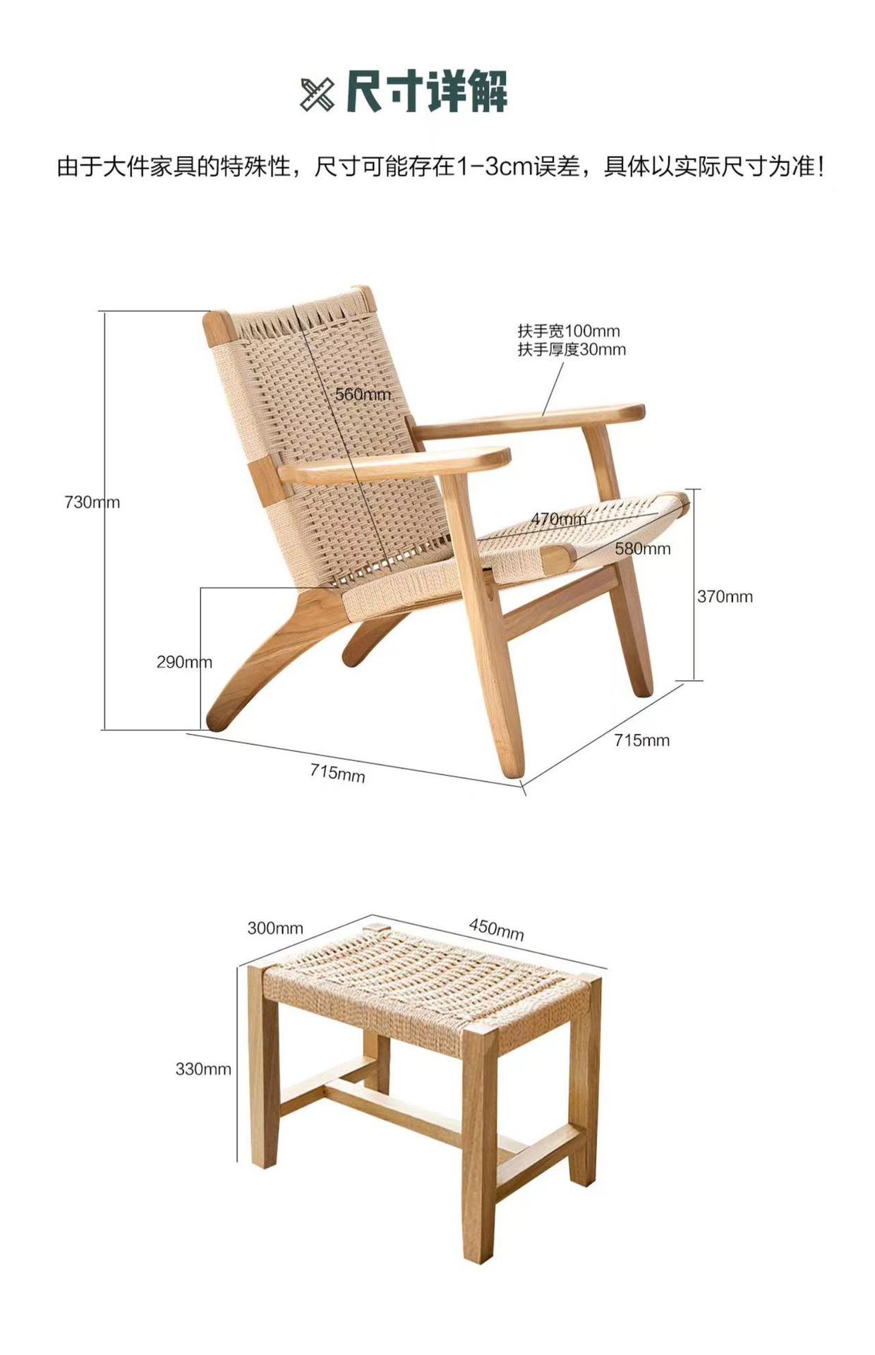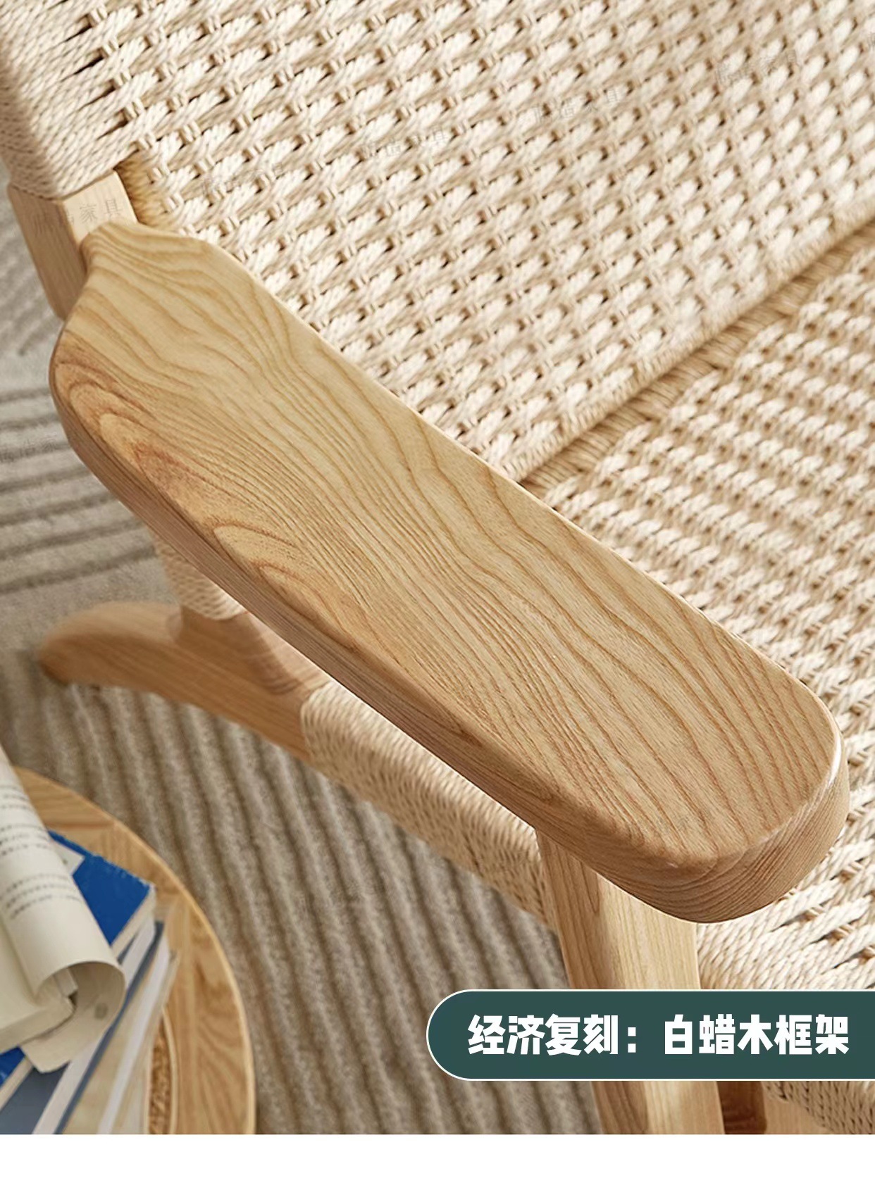 北歐實木繩編懶人沙發椅客廳咖啡廳民宿休閒靠背椅子家用讀書椅子 4