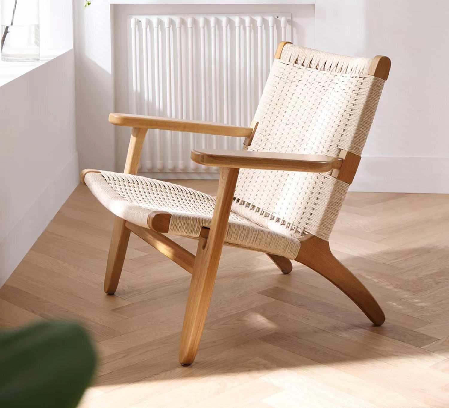 北歐實木繩編懶人沙發椅客廳咖啡廳民宿休閒靠背椅子家用讀書椅子