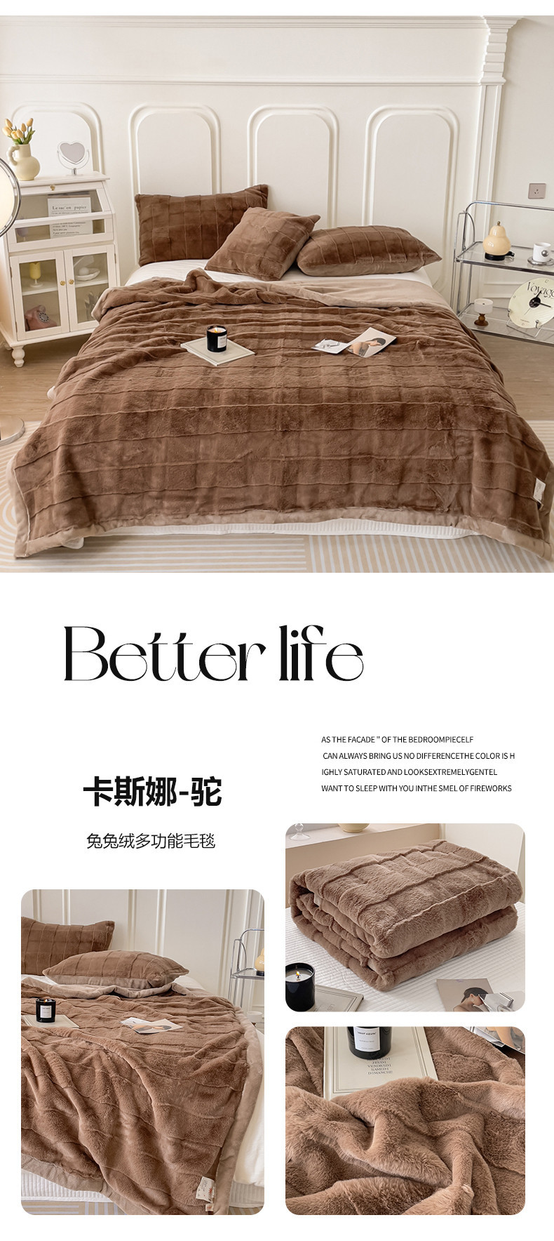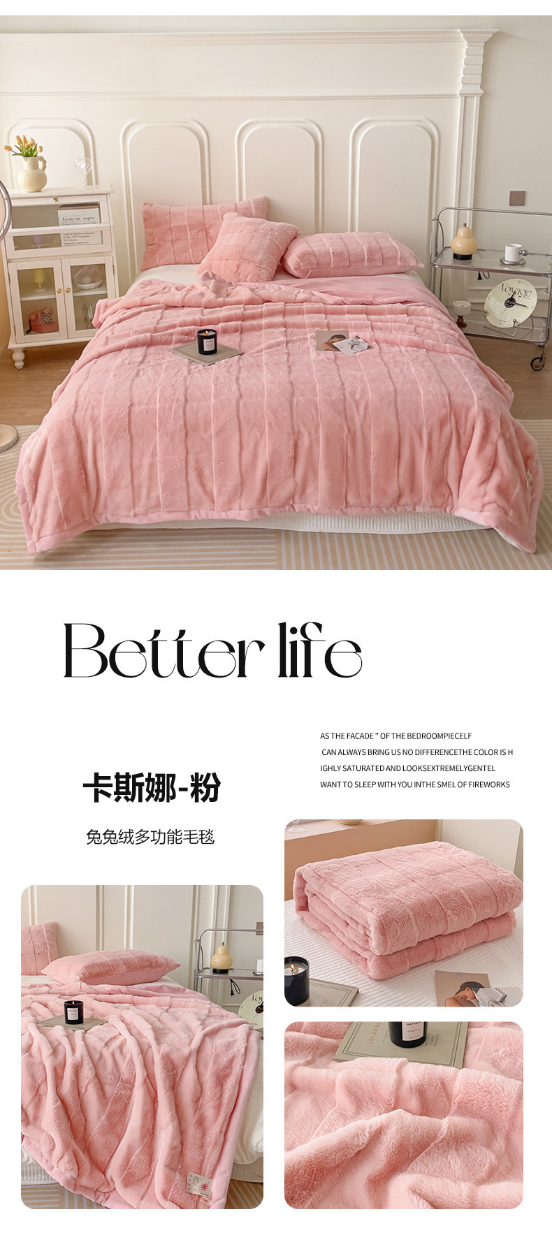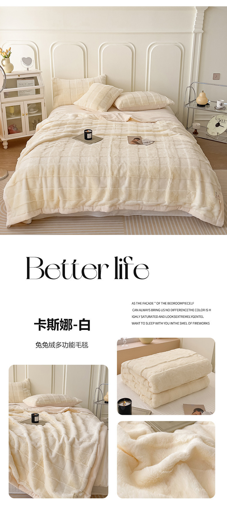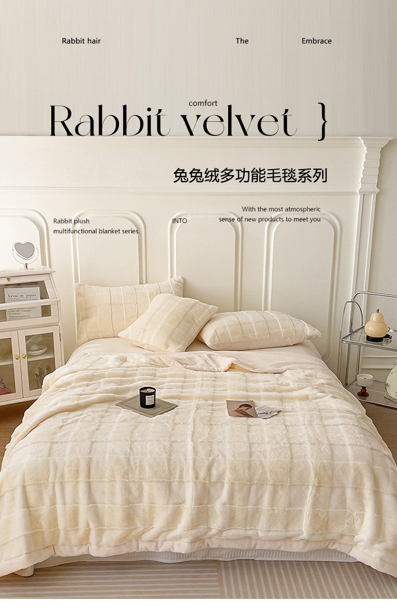 兔兔絨毛毯貂皮毛毯蓋毯午休毯皮草毯學生毯單人保暖絨毯