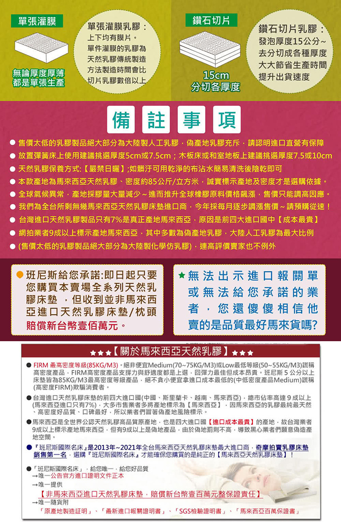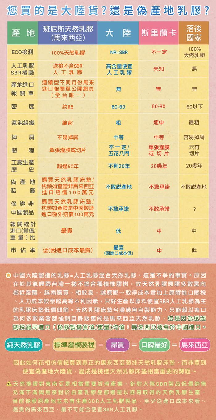 ※無說明的天然乳膠商品,產品資訊不足,必有其盲點之處,請不用列入選購範圍~密度、無公開產地