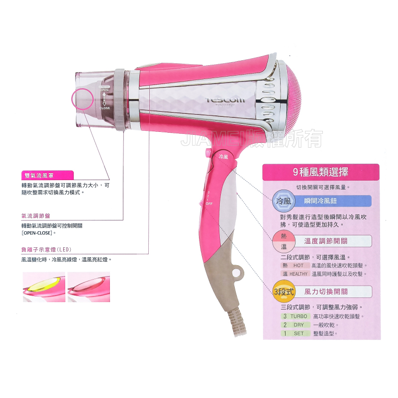 ■TESCOM 粉紅鑽石負離子吹風機 TID960TW