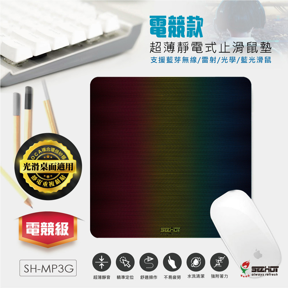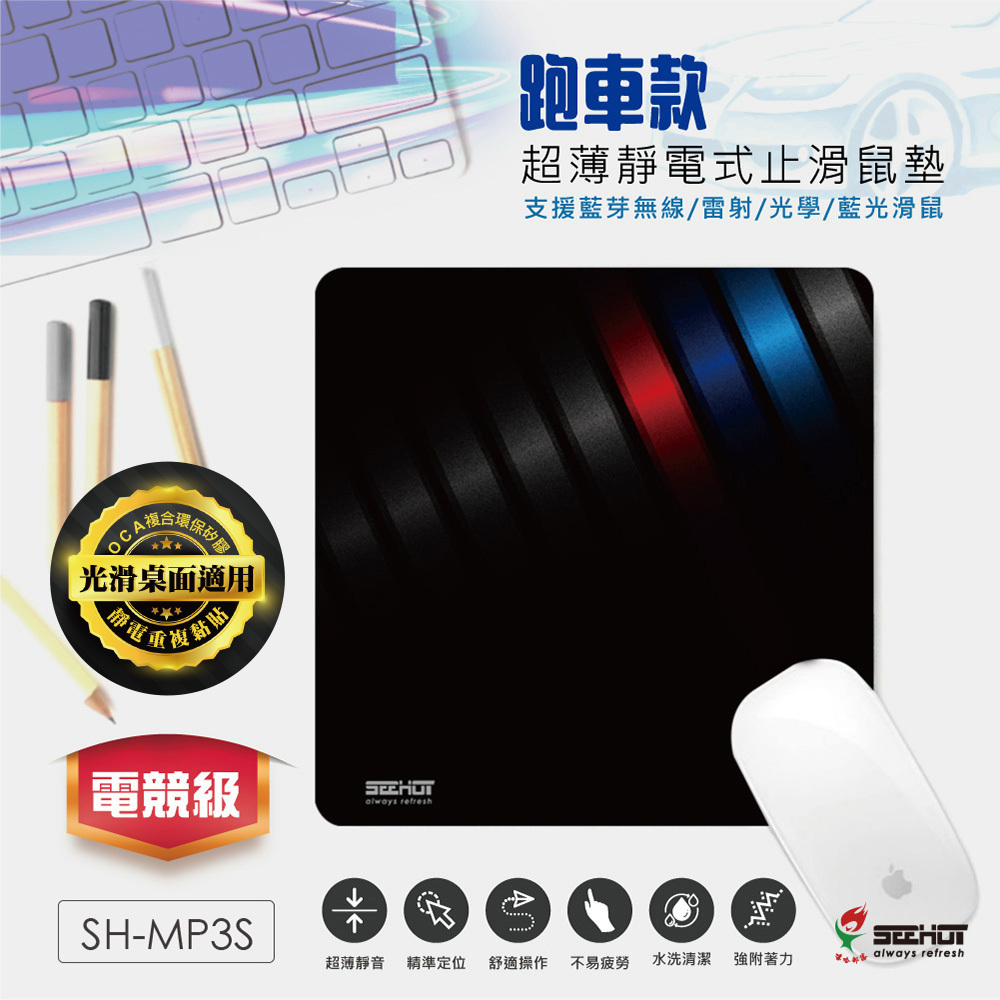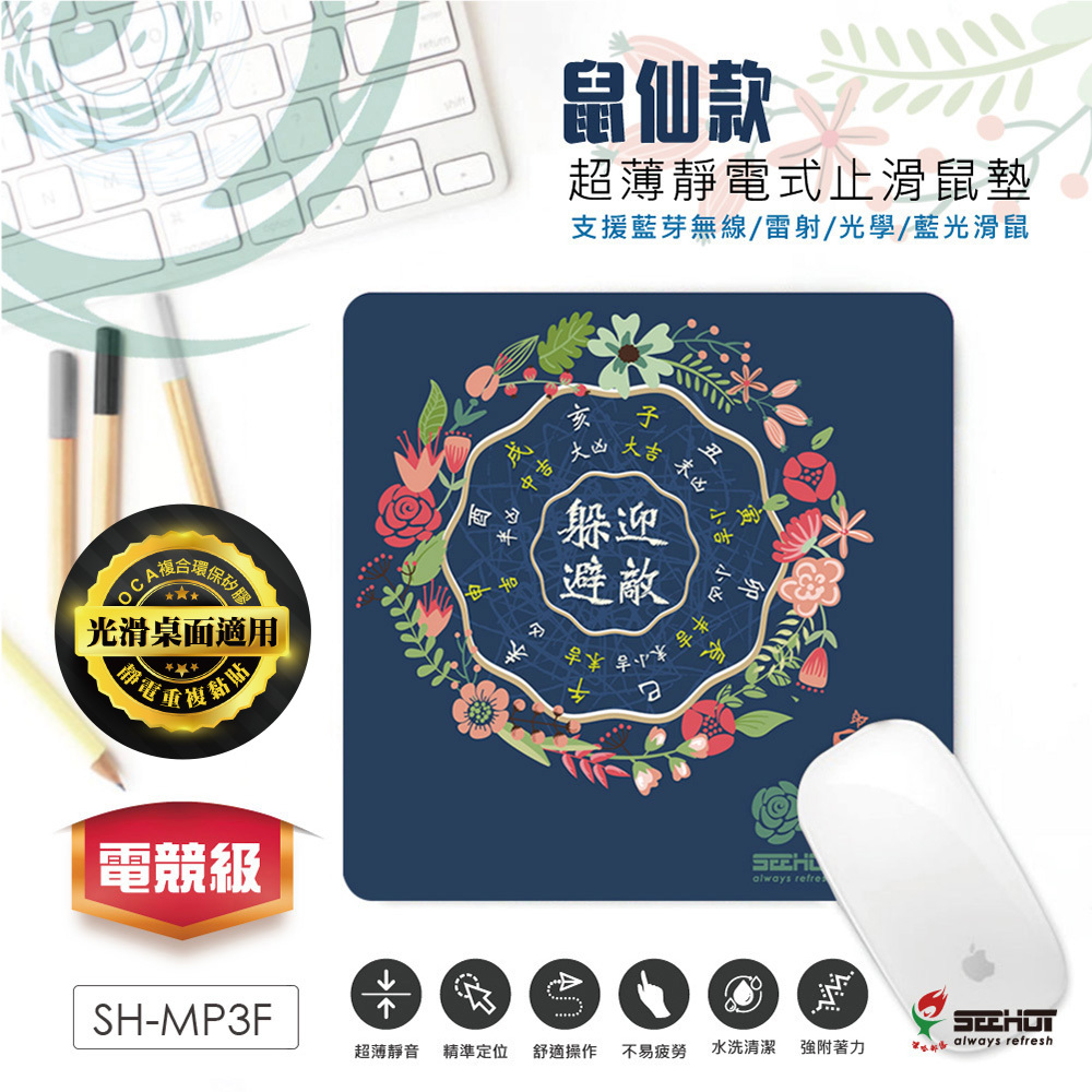 1.撕下背面膠片,黏貼在預使用滑鼠的光滑桌面上使用。