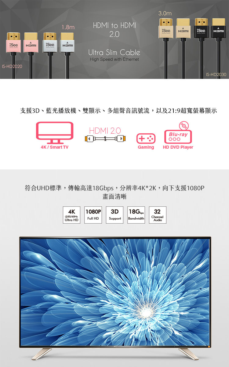 ◆ 完全符合HDMI 2.0版規範,支援3D影像傳輸
