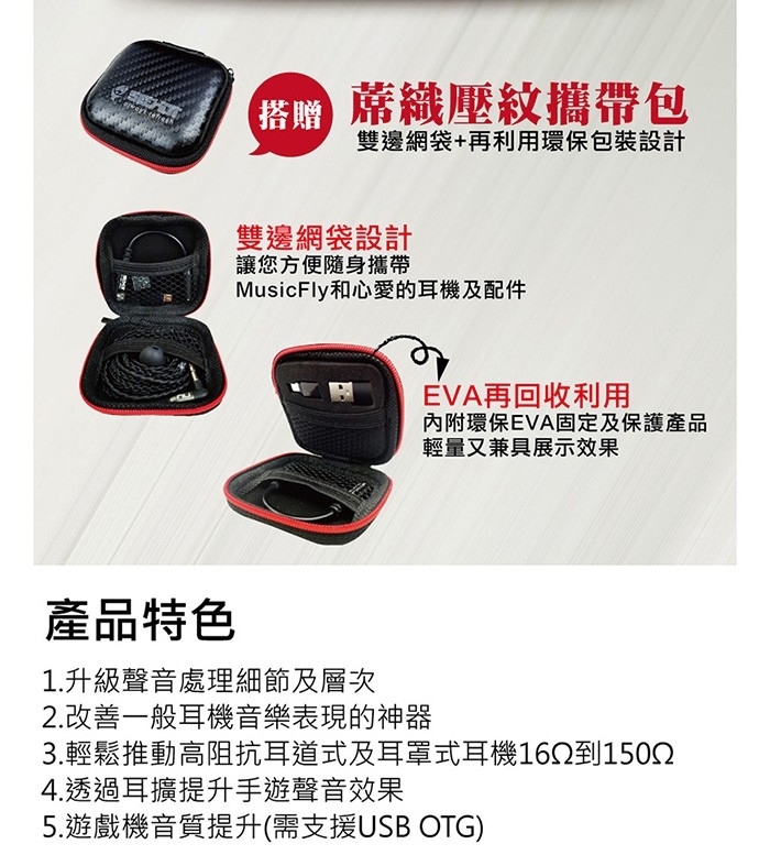 2.MUSIC FLY除了增加耳機推力之外,用於外接音響也可獲得高動態、高解析低底躁的效果改善。