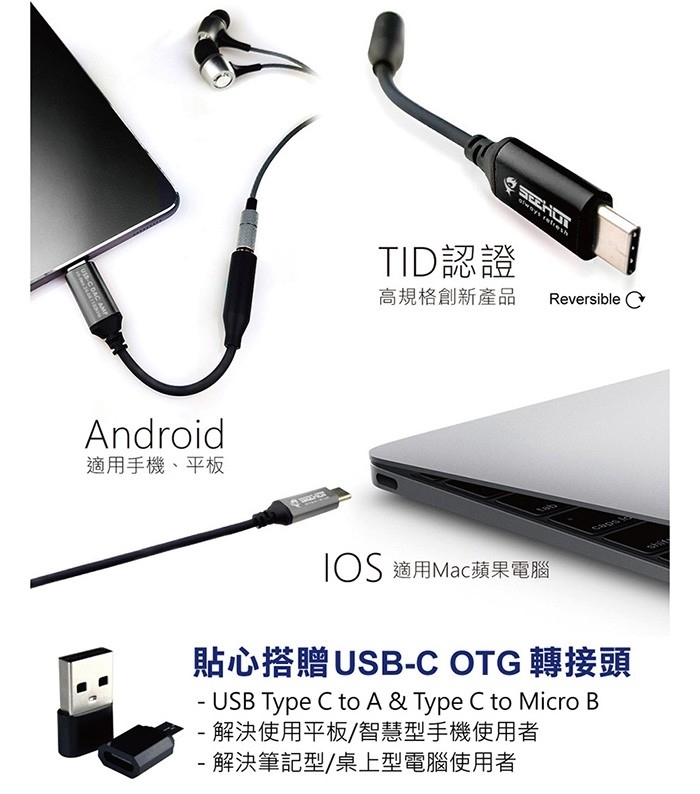 ►介面:Type-C 公頭;3.5mm 母頭
