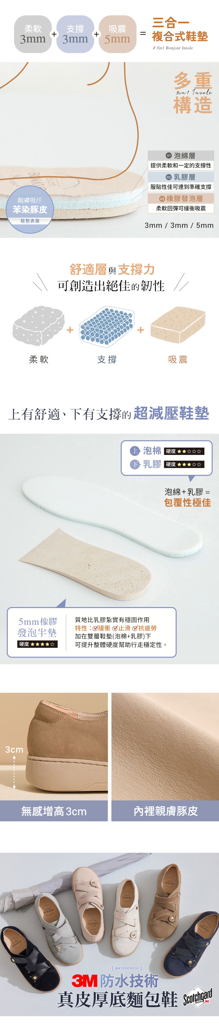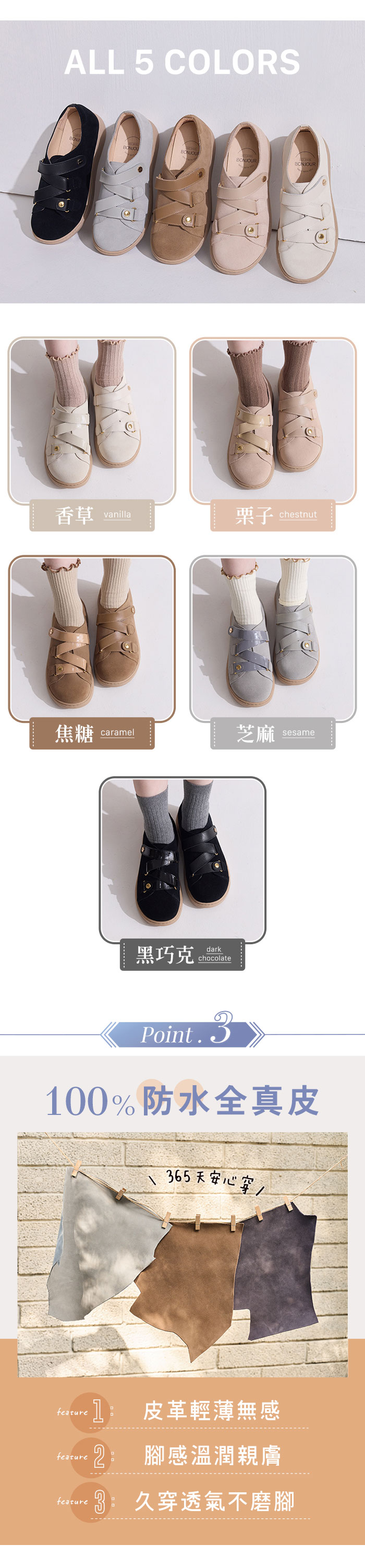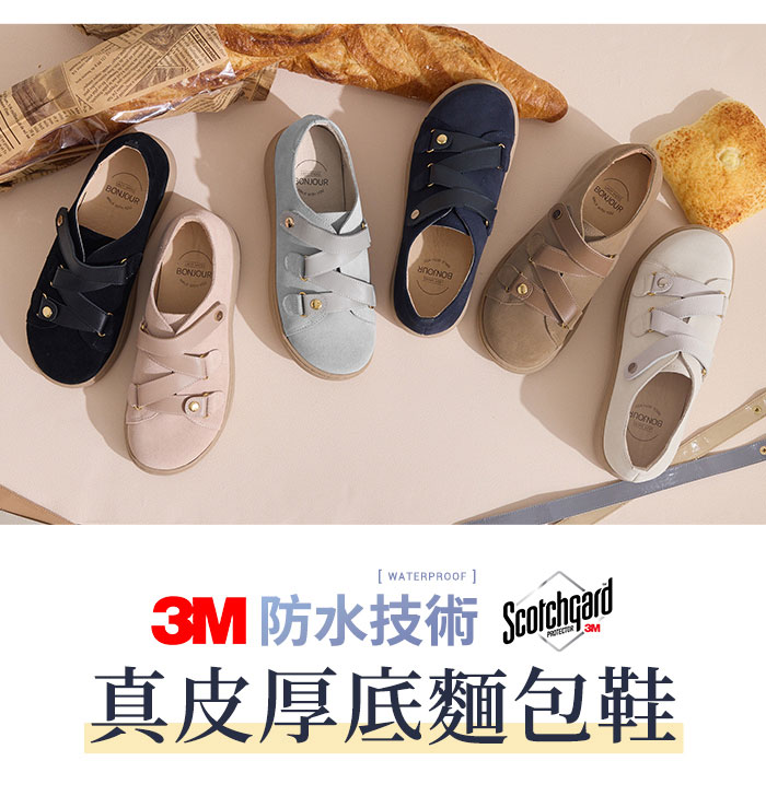 BONJOUR☆3M防水技術!MIT真皮厚底麵包鞋【B0655】5色