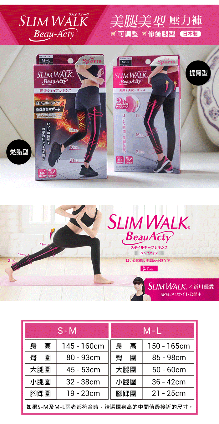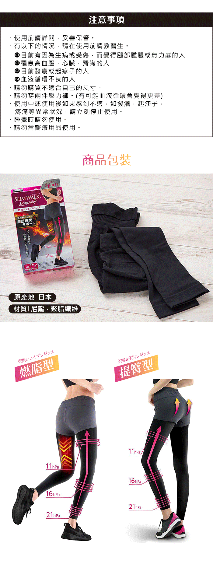 BONJOUR日本製 SLIM WALK Beau-Acty(提臀)美腿壓力褲 E.【ZS643-6S3】