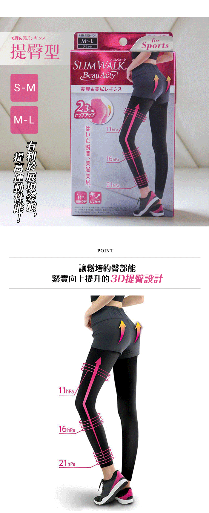 讓鬆垮的臀部能緊實向上提升 三段機能美腿拉提壓力 適合運動穿著的舒適材質